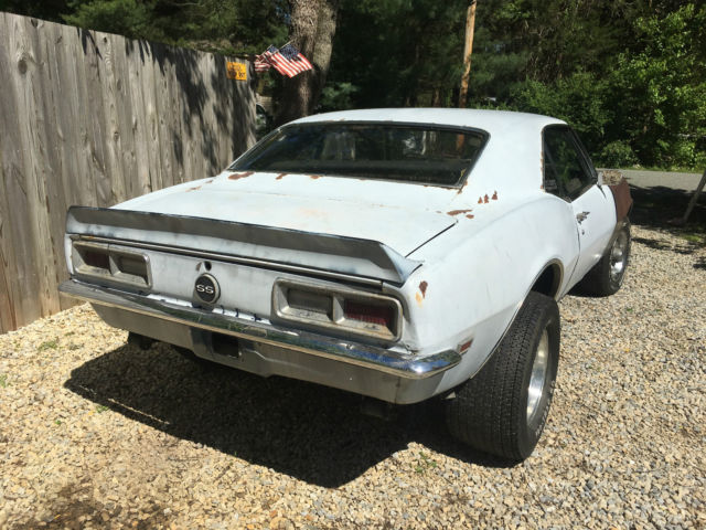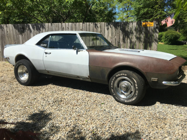 1968 Camaro Project Car Clear NJ TitleNew Fender, lower valance, and header panel already installedLost interest and time for my Camaro due to other priorities Will need restoration floor pan patches (tranny tunnel looks good), some metal work on the rockers, center trunk pan, and various other body work.Rear frame rails look amazing Subframe is in great shape new bushings and other front end hardwareShocks, control arm hardware, and other various suspension parts redoneFirewall is in Great Shape as well as cowl and the rest of the engine bay403 Olds Motor runs , heads were redone, new intake, (blowing oil out driver side exhaust not sure why), Carb functions great, Needs Shorter Throttle Cable Interior is all there and intact 15 inch rallys up front and some nice fat tires out back on some drag centerlines Please contact me with any questions I will be happy to answer themLocation: Monroeville, NJ ZIP CODE: 08343Buy it now or Best OfferWinning buyer of this auction must pay a $200 non-refundable deposit through PayPalRemainder of balance is due cash in person or a secure bank wire transfer from a reputable bankThis 1968 Camaro is being sold as isUpon pickup I can help load the car, it cannot be driven due to the throttle cablePlease fully inspect all photos and ask questions before purchasing (no negotiations due to buyer negligence). If a in person inspection is needed please contact me and I will be happy to show the car. Thank you and Good Luck !!