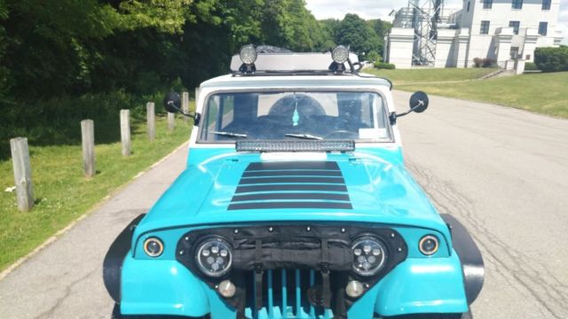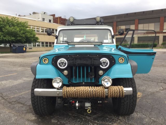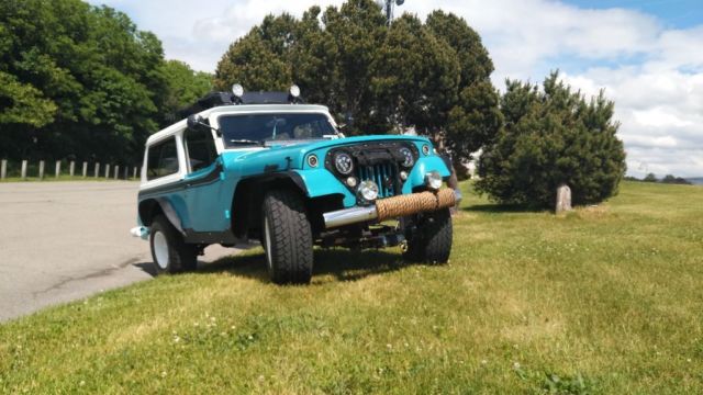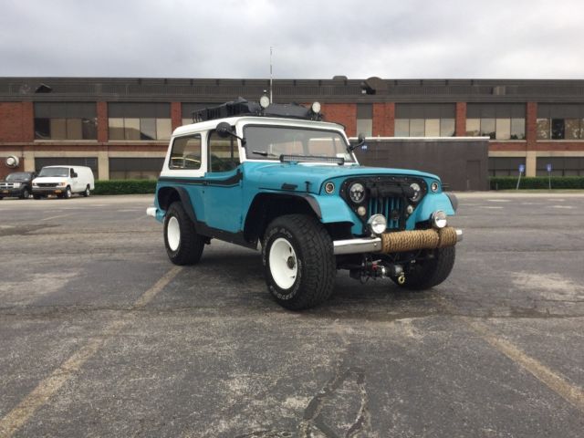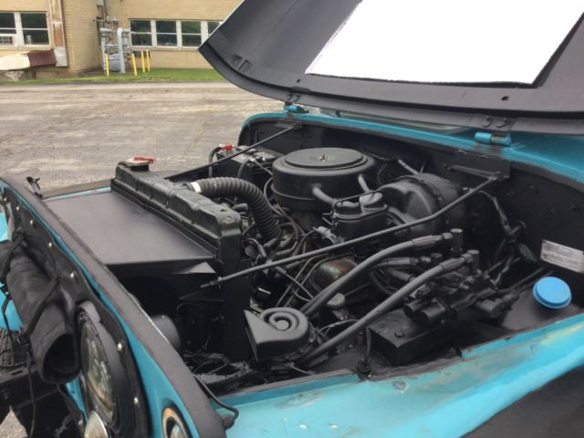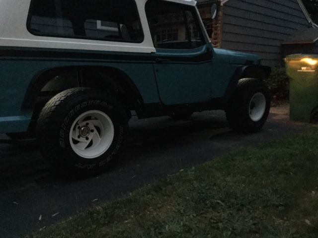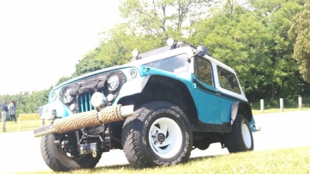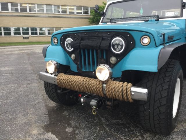 98,200 Miles Customized, One off Jeep. Fun to Drive. Real eye catcher. Lots of time and money has gone into this rebuild. It was built to be a great daily driver. It runs and drives great, Ready for a summer adventure! Here is a list of what has been done along with new parts. Under the Hood New Water Pump Thermostat Alternator Brake Booster Plugs, Wires and Pickup Coil Cap and Rotor New Hood Insulation Suspension Bell Crank Arm and Steering Linkage Brakes and Drums Wheel Bearings Re arching of all leaf springs, complete with all new bushings ($650) 33" Tires and Aluminum Wheels with Vintage Jeep Centercaps 4 Wheel Drive works great, High and Low, Locking Hubs New Emergency Brake Cable Exterior Teal paint 15 cf Rainproof Luggage Cargo Bag 64" Cargo Basket Emergency Light LED Headlights with Daytime Running lights 7 LED Off Road Lights 1 - 31" LED Bar 2 - LED Fog Lights with LED Amber ring Running Lights 2 - Bumper Mount LED Fog Lights 2 - Cargo Rack Mounted LED Fog Lights Upgrades Spare Tire Mount with Full size spare Completely Rebuilt Transmission ($1700) 2,000 mile ago Gearbox inspected Off Road Pillar mount, Quick Release, Rough Country Mirrors Headliner with Dual LED Lights Aftermarket Radio with a new 6x9 in the Dual 8" Speakers behind Rear Seat New Recoil Seat belts Diamond Plate Rocker Panels New Carpet Winter Grill Cover from a Military Jeep Rally Stripes on Sides and Tapered Stripes on the hood Bumper Mount LED Reverse Lights Replaced single 20 Amp Fuse with a 10 Blade Fuse Panel Dual LED Tail Lights 2015 JK Textured Fender Flares 3500 Pound Power Winch with Cover and Remote Brand new Steering Wheel and Hub with Horn 12v Refrigerator/ Warmer Cooler Included and Operational Rock crawler lights mounted in wheel wells