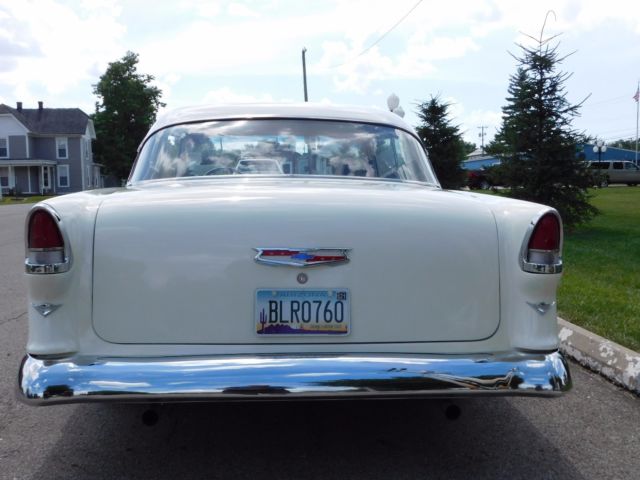 This Belair came to me via an Arizona Title originally from PA, We had to replace part of the trunk pan and patch a small hole in the floor but other than that the body was rock solid and very nice, We did a frame off restoration. Every nut and bolt in this car has been replaced.. Door skins were replaced in order to eliminate using filler..and the Body lines are straight. The paint is nice, and polished to a good show condition.The running gear is a SBC 355 ,refurbished with new pistons EDELBROCK carb , Summit big valve heads and a medium cam.It has a rebuilt 700r4 auto transmission kickdown and converter lockdown , and an original rear end. dual aluminized exhaust with stainless mufflersThe suspension has an upgraded Unisteer power rack, and the front brakes are disc empowered, the rear brakes are refurbished and original. smoothie bumpers, nice grille, new trim, rechromed window trim,etc, Upholstery is vinyl, Daytona weave carpeting, Flaming river column, chrome joints, Motor mounts are rubber donuts on side mounts.This is a nice street machine and Has just been finished with new tires and wheels, It has a billet dash and chrome banjo steering wheel, the speedo gauge is manual, HAS full A/C and heater, the A/C has recently been charged with refrigerant and the air blows cold. You will have to arrange your own Shipping and Payment is required to be complete in 7 days.If you are a zero{0} feedback bidder proof of financial qualification will be required before consumating entire amount at closing.