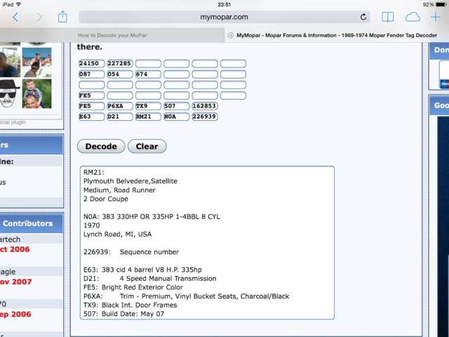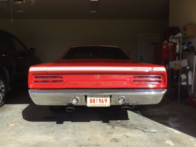 RE-LISTED due to buyer "computer issues" or something. Anyway, now it is someone else's opportunity to own an excellent specimen of roadrunner. Completely restored and ready for car shows, cruise nights, nostalgia drag races, long trips, whatever tickles your fancy. A recent example of roadworthiness of this car is it was driven form its home to a car show in Ft. Worth, Tx. on 25June17. Round trip clocked 558 miles on the odometer. Yes, this car gets driven and still looks this good. It will continue to be enjoyed until sold. Buyer responsible for shipping. Specifics listed below and please ask questions before bidding. Spare tire and jackImprovements/upgrades/ changes made while I have owned it:Orange box electronic ignitionEdelbrock dual plane intakeDemon 750 carburetor Dougs ceramic coated headersNew correct color coded engine wiring harnessNew exhaust with x pipePypes mufflersMancini racing rear main capDigital radio with Sirius satellite radio receiver Tinted windowsPeriod correct sun tachometer QA 1 tubular K frame with upper and lower control arms, new power steering box.New hurst shifter with pit pack extreme duty bushingsWizard cooling 22" aluminum radiator with 1.25" tubesNew drivers side window regulatorHave all of the original items that have come off of the car: K frame, control arms, radiator, intake, exhaust, pistol grip shifter, original Hurst shifter, AM radio, as well as a fiberglass "A12" hood still in the box. If asking price is paid, these items will go with the car.Known issues:Rear main seal has a small seep. Rear end has a small seepHas a few places where the paint is chipped and touch up paint applied. Windows are a little sticky rolling down and up.