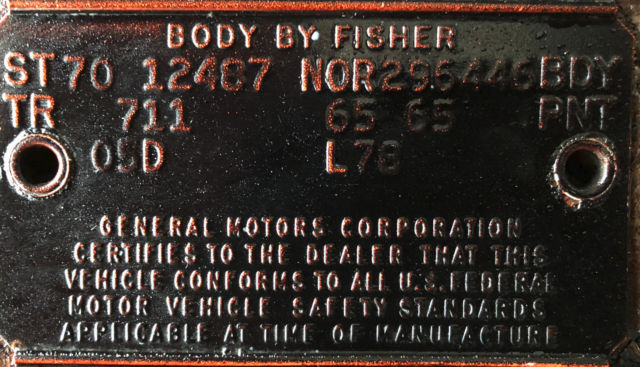 | Warranty: | Vehicle does NOT have an existing warranty | Engine: | L78 396ci (402ci) 375hp |