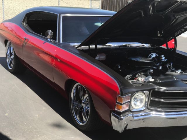 Drivetrain:- 383 CID Stroker- Edelbrock 4BBL Carburetor- Edelbrock performer RPM aluminum intake manifold- New Battery- MSD 6A electronic ignition controller- Longtube headers- Dual exhaust- Power Steering - Aluminum Radiator w/electric fans- New 700R4 Automatic overdrive- New 411 rear gears w/eaton posi- New fuel system: tank, lines, pump- New steering components, & steering box - New Brakes 13" front 11" rear drilled and slotted rotters, 4 piston calipers, new master cylinder with booster, braided lines- New suspension kit: tubular upper & lower front control arms, adjustable rear upper control arms, front and rear sway bars, front 2" drop spindles Exterior custom two-tune wrap with satin black vinyl - Driver quality paint with nicks, scratches and dents here and there (10 footer paint quality)- LED Headlights- Minor rust bubbles on 2 wheel wheels, besides that pretty solid - LED Headlights- New weather stripping - New glass windows with limo tint throughout - New Wheels: Torque Thrust 20x10 rear 18x8.5 frontCustom two-tone black interior - New Factory tilt steering- New vintage air conditioning - Heated front bucket seats- Power windows- New Dash insert and new Marshall Instruments LED/Digital Analog gauges- Complete sound deadener on interior and trunk - Clifford Alarm with GPS tracking/disabling- Keyless remote entry- 7" touch screen AM/FM/AUX/MP3/NAV/DVD Stereo- Custom speaker system w/ two 10" subwoofers- Upholstered and finished trunk. Iâm glad to speak with serious potential buyers over the phone and I welcome 3rd party inspections. Title and Car will be released after completed funds in full. Ok with worldwide shipping, 209-915-3400 Clear CA title in hand in my name.