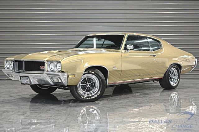 214-453-2547 Visit eBay Store ✕BACKNEXTBACKNEXTBACKNEXTBACKNEXTBACKNEXTBACKNEXTBACKNEXTBACKNEXTBACKNEXTBACKNEXTBACKNEXTBACKNEXTBACKNEXTBACKNEXTBACKNEXTBACKNEXTBACKNEXTBACKNEXTBACKNEXTBACKNEXTBACKNEXTBACKNEXTBACKNEXTBACKNEXTBACKNEXTBACKNEXTBACKNEXTBACKNEXTBACKNEXTBACKNEXTBACKNEXTBACKNEXTBACKNEXTBACKNEXTBACKNEXTBACKNEXT Image 1/36 Image 2/36 Image 3/36 Image 4/36 Image 5/36 Image 6/36 Image 7/36 Image 8/36 Image 9/36 Image 10/36 Image 11/36 Image 12/36 Image 13/36 Image 14/36 Image 15/36 Image 16/36 Image 17/36 Image 18/36 Image 19/36 Image 20/36 Image 21/36 Image 22/36 Image 23/36 Image 24/36 Image 25/36 Image 26/36 Image 27/36 Image 28/36 Image 29/36 Image 30/36 Image 31/36 Image 32/36 Image 33/36 Image 34/36 Image 35/36 Image 36/36 See Full Size Photos View Full Size Images 1970 Buick GS Stage 1 Stock #: 210814 Exterior Color: Gold Interior Color: Black Body Type: Coupe Transmission: A Engine: 360 HP V8 Title Condition: Clear Vehicle Description **** Documented Factory Stage 1! Verified by GS Historic Society! Absolutely Pristine! Flawless Paint Job! Incredible Frame-Off Restoration! Powder Coated Frame! Professionally Built 500hp+ Buick 455! True Track 9 in Rear End! Professionally Built Transmission! Custom Driveshaft! New Brakes! Urethane Bushings! Factory Parts Included!*** Contact us now at 214-453-2547 for more details! Contact us for more details: 214-453-2547Call Dealer Photos Vehicle Warranty New Vehicles come with a full-factory warranty. Used vehicles may have a remaining-factory warranty, but please contact us for the warranty details specific to this vehicle. Terms and Conditions Finance, Warranty, Shipping question? - Call the dealer at 214-453-2547 Payment Options We accept the following payment methods: - Cashier's Check/money order- Loan check from eBay Financing Center- Cash (in person)- Personal check (once cleared) Vehicle Pickup & Shipping All shipping charges are buyer's responsibility. General Terms Notice to Bidders: All of the vehicles we list on eBay are for sale locally. We reserve the right to end an auction early. All cars are immediately ready for delivery upon sale. Deposit: We require a non-refundable $500 deposit within 48 hours of winning the auction. Please call to make arrangements for payment. Payment Types: Cash in person, Certified Funds, Institutional Financing All sales transactions must be completed within 7 calendar days of auction close. Prices subject to change without notice and do not include Title, License, Registration Fees, State or Local Taxes or Processing Fees, if any. Please contact seller first for vehicle availability. Although every effort is made to present accurate and reliable information, use of this information is voluntary, and should only be deemed reliable after an independent review of its accuracy, completeness, and timeliness. It is the sole responsibility of the customer to verify the existence of options, accessories and the vehicle condition before time of sale. Any and all differences must be addressed prior to time of sale. No expressed or implied warranties, including the availability or condition of the equipment listed is made. EPA mileage estimates for comparison purposes only. Actual mileage may vary depending on driving conditions, driving habits, and vehicle maintenance. Fees and Taxes Sales tax, title, license fee, registration fee, dealer documentary fee, finance charges, emission testing fees, and compliance fees are additional to the advertised price. Vehicle is listed locally, we reserve the right to end the auction at any time.