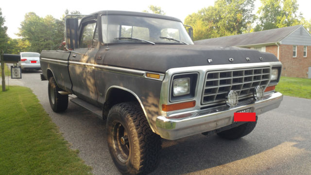 Increasingly Rare- 1976 Ford F-250 4X4 True Highboy. â76 is considered by many collectors to be the most desirable of the highboys due to front disc brakes, power steering, and open knuckle axles. VIN on frame matches body. Clean title in hand. No smoke! Loses no oil! Divorced transfer case 4X4 factory lift ânaturalâ highboy. 4 Speed Manual. 4wd works great. New Exhaust! This truck is dent free with very little rust. Frame has been undercoated in the past and is in very good shape. There was some rust in the bed. Itâs been stripped and primed. Original in-cab fuel tank has been reconditioned and protected with âRedKoteâ. Front brakes (Rotors, calipers and pads) all done this year as well as new hubs. 351M engine with unknown mileage. The odometer is not running, says 68407 and has been there for the two years Iâve had the vehicle. I've put limited mileage on it; mostly trips to Home Depot with my son. Aftermarket grill, flood lights and tachometer. Needs some electrical attention (instruments not all working/ connected. Original 8-Track, though not connected.) Rawson Koenig Tool Box worth 1100 new. Drop-In liner. Great tires with lots of tread. Was blue metallic, now primer gray. Have paint for it to return it to original color Power steering fluid leak at power cylinder. Nw seals in hand and may have time to fix by time of sale Some rips in original drivers side seat vinyl. Saddle blanket cover. This truck is very straight and runs and drives great. Feel free to contact me with questions. Make an offer! Also for sale locally.