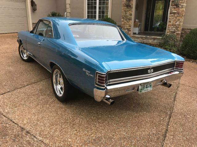 I have owned this show winning classic '67 Chevelle Malibu since the year 2000. The AWARD WINNING HISTORY proves the quality of this beauty! *https://youtu.be/Pe9VJc-TtY4 Trophies from World of WheelsTrophies from Super Chevy ShowsMultiple Car Show Trophies from Tennessee, Ohio, Iowa and more!Featured on Super Chevy Series on Velocity Channel November 2016The car boasts a 396 Big Block that has been bored 30 over to a 402, slightly bigger cam. New timing chain. The body has less than 52,000 miles on it and the engine was rebuilt around 30,000 miles. Transmission is a Munice 4-Speed that shifts VERY WELL. The rear end has positive traction, with 373 gears. The PPG paint is in good condition - Was repainted Marina Blue 10 years ago. Interior is in very good condition - as well as Bucket seats & console. Tilt Column with Flashers, custom Billet Steering Wheel. All gauges work, except Alternator - (easy fix). The Chrome, Windows, Rubber around doors & windows are all in very good condition. Comes with Blinker Tach. Power Steering and Power front Brakes. Beautiful Chrome Engine! Custom Trunk-(Superman does not come with the car) Wheels are Custom made Billet. Air Shocks in back. Carriage is nice. (*Note: Because I am a perfectionist...the hood has a slight wrinkle on the drivers side-- which I had planned on replacing the hood. I have the hood available and will include this with the purchase. The car has won all the awards with the original hood as it is.) Oil - Valvoline 20W-50 High Zinc. Tires - Front 245/45 2R 17-Nitto Back285/40 2R18NittoThis car drives good and turns a lot of heads! Any questions call Dave: 419-722-5894 *Money must clear before title or car is released. NO WARRANTY