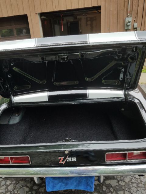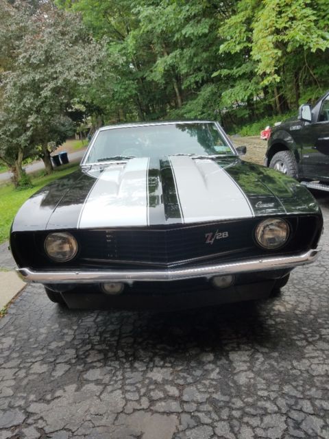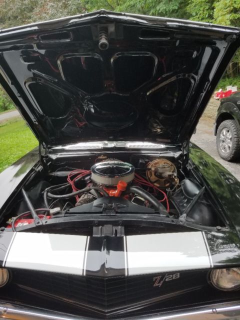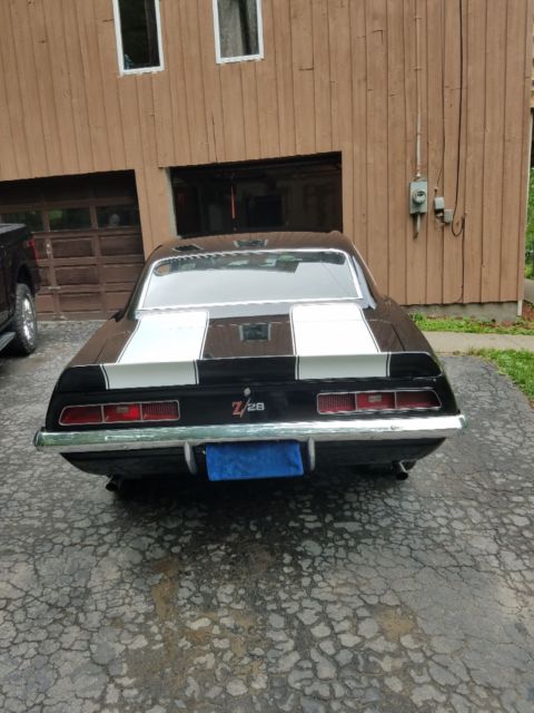 For sale a fantastic example 1969 Camaro Z28 Tribute Black with white stripes!!! Phenomenal paint!! Everything seems to work!!! Engine has no leaks or problems I notice. I've had it out for a couple of hours with no issues. Receipts in the thousands will come with it. As seen in the pictures, the engine is in great shape. Headers, manual windows and steering. 10 bolt rear end. Single leaf springs. New: Battery, steering wheel, all mirrors, correct chrome bumpers, correct seat belts, carpet trunk mat, glove box, gas tank, exhaust and rear glass. American wheels with plenty of life on the tires. Front disc brakes. The vehicle report and title report states the odometer has not been altered. 68,257.7 miles. I recently retired from the Marine Corps and am renting but looking to buy a home. It is very well maintained and garage kept. Period correct 327 (13 GM 3892657) with auto transmission. Handles, runs and sounds great. Make a bid and take it home!! Take this beauty out for cruises now during the summer!! Serious buyers only please. VIDEO BELOW!!https://youtu.be/ek0Dc751E8oSECOND VIDEO!!https://youtu.be/ROc_mu8r91Q Serious buyers only please. I will be available for inspections and appraisals. Buyer is responsible for vehicle pick up or delivery fees 100 percent. Funds must clear my financial institution before shipping or pick up of the vehicle. Deposit of $1000 is non-refundable. Please only bid if you intend on purchasing. My name is Tim. Thanks for your time and consideration.