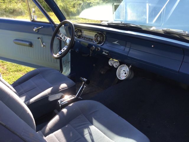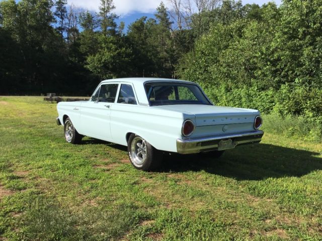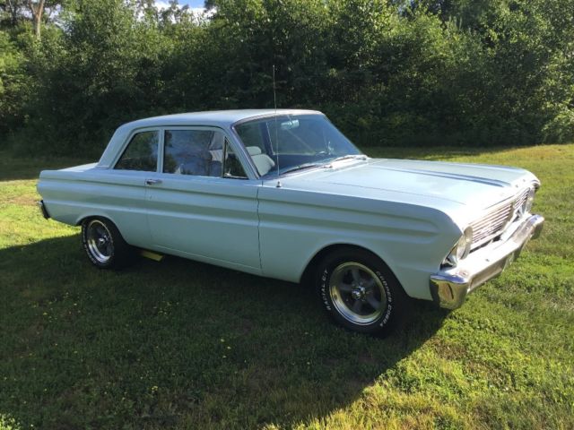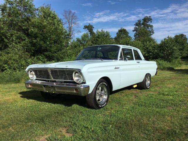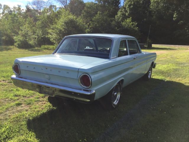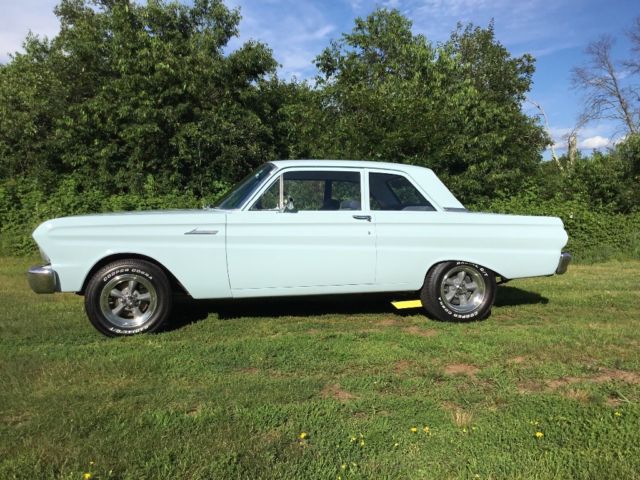 1965 Ford Falcon 2 door Sedan. Built old school, nostalgic, built like we did back in the 70âs. Originally Louisiana car, no rust. Solid original floors, frame, body, doors, bumpers and glass. Painted original Arcadian Blue, would give paint a 6 because there are flaws such as a few drips, orange peel etc., looks good from about 6 feet away, another good buffing would really look good. Here are the detailsâ¦â¦ Engine: 5.0 liter out of a 1991 Mustang, has been rebuilt, stock internals, heads. Edelbrock Performer RPM intake with a 600 Holley DP. Hedmann headers into a custom exhaust with Flowmasters dumped at rear axle, sounds incredible. All new ignition, 1 wire alternator, aluminum radiator, electric fan, TCP motor mounts, motor runs fantastic. Fuel system plumbed with -6 stainless braided hose, electric fuel pump to regulator. Transmission: C4 out of a 1965 Fairlane. Rebuilt with alto red clutches and Kevlar bands. Transgo shift kit and 10 inch converter, shifts nice and cooler plumbed with -6 stainless hose. B&M shifter. Suspension: Complete CSRP front suspension. New spindles, ball joints, all steering linkage for V8. Front manual disc brakes with slotted rotors. New springs, all bushings and new control arms. Rear suspension new General Spring V 8 leaf springs bushings and shackles. Frame connectors. Old school âslapper barsâ traction bars for the nostalgic look and functionality, it does burn rubber with no wheel hop. Rear axle: Ford 9 inch. New Currie housing, 31 spline axles, big drum brakes. Center section is a C7AW- E out of a Ford Bronco, rebuilt with new bearings, rebuilt traction lok, Motive 4:11 gears. Custom built driveshaft with 1310 U- joints on both ends with a hardened transmission yoke. Interior: Everything works. Heater/Defrost, lights, fuel gauge, horn, speedometer. Bucket seats are out of a 1991 Mustang, original rear seat. Door handles, window cranks and door panels are original. New carpet, headliner, seat belts and visors. Wheels and tires: New Torque Thrust DâS for the nostalgic look. Front 15X6 with Cooper Cobra 215/65 15, rear 15X8 with Cooper Cobra 245/65 15, car has a perfect stance. Car is a blast to drive. Drives great, turns heads, sounds amazing. Perfect for cruising, nostalgic drags and has a perfect foundation for taking it to the next level, whatever that may be. No warranty, sold as-is, no returns Additional info please email me at waynes92lx@ yahoo.com
