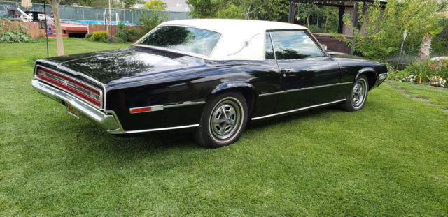 This beautiful 1968 Ford Thunderbird has always lived in California and has zero rust and a very straight body. I have garaged it everyday since painting it and putting on new vinyl top which are both only 4 years old. The engine is the original 429 cid engine with 150,000 miles and I have a log of all of the oil changes and it has an electronic ignition that I installed along with a new Edelbrock 650 CFM carburetor. The AC blows cold. It does have a rear main oil seal leak. I have gotten it to up to a top speed to 130 MPH It has all new belts and hoses. The radiator has been re-cored. The brakes have been rebuilt. The tires have 5,000 miles on them. The interior is 95% original and looks like new. Has a new JVC radio with blue-tooth for your phone. All new radio speakers plus an under the seat 180 watt sub woofer. The steering wheel is a swing away for easy access. It also has a retractable antenna. This is a great car, and a daily driver. It would be a great start to build your dream show car, if that is what you are interested in.