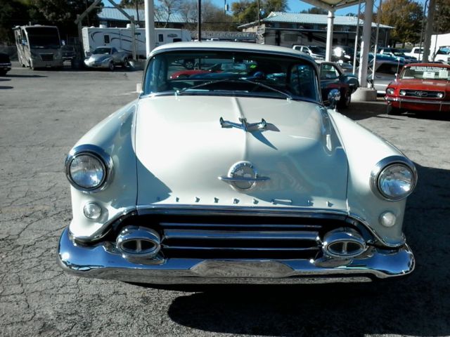 Best Offer Available1954 Oldsmobile Ninety Eight Holiday HTSee more photos belowTop Line InformationYear:1954VIN:549C7996Make:OldsmobileModel/Trim:Ninety Eight Holiday HTCondition:Pre-OwnedBody:CoupeExterior:white/teal Engine:Rocker Ninety Eight V8Interior:teal ClothTransmission:Automatic Mileage:42,330Drivetrain:Rear Wheel DriveAdditional Photos* * * Click Photos to Enlarge * * ** * * Click Photos to Enlarge * * *Phone: 210-384-0084DescriptionHOVEY MOTORCARS CLASSIC DIVISION IS EXPANDING! LOOK WHAT WE JUST FOUND STORED IN A WAREHOUSE FOR 32 YEARS.....1954 OLDSMOBILE NINETY EIGHT HT COUPE, WITH 42,330 ACTUAL MILES, ROCKET 98 V8, HYDRAMATIC TRANSMISSION OPTION, ALGAN WHITE OVER NORDIC BLUE, REPAINTED ONE TIME MINT, CHROME MINT, WE JUST BOUGHT NEW COKER 2 1/2 WHITE WALLS, THIS IS AN EXTREMELY NICE RARE VEHICLE WITH AN INTERESTING HISTORY! THE INTERIOR IS MINT ORIGINAL COMPLETE, IN FACT ALL THE CAR IS MOSTLY ORIGINAL AND VERY NICE! 210-384-0084 We Carry over 10 Nice Classics, Buy Classics and Collector Cars, Finance Collector Cars, Call for any information and Details......This Vehicle will have a CERTIFIED National AAG Appraisal.At our dealership we work very hard to accurately describe our vehicles through text descriptions and elaborate photos. When you purchase a pre-owned vehicle it is not a new vehicle. Any used vehicle can have normal wear and blemishes. Before placing a bid please read the descriptions thoroughly and view all pictures. Included Standard Equipment Hours of OperationMon: Tue: Wed: Thu: Fri: Sat: Sun: 9:30a - 7p9:30a - 7p9:30a - 7p9:30a - 7p9:30a - 7p9:30a - 6pClosed Vehicle ValuesTravelVehicle HistoryInsurance Warranty FinancingLet us help you finance your next vehicle. Begin by clicking the credit application button, print, and fax us your completed application.Our finance team will work to get you the best financing options available. TermsPayment Types:Certified Funds and Institutional FinancingFees:Out of State BuyersOut of state buyers are not charged tax, title, or license. The customer is responsible for registering the vehicle in their home state.Taxes and FeesIn state buyers will be charged state and local taxes, title, registration, and documentary fees. Our documentation fee is $125.00 All sales transactions must be completed within 5 days of auction close. DepositWe require a $1500 deposit within 3 days of winning the auction. Please call the dealership to make arrangements for payment.Terms:Auction PoliciesCustomers with zero or negative feedback on eBay Motors please contact us prior to bidding. Otherwise, we reserve the right to cancel your bid. Understand this is only to protect the integrity of the auction. Winning bidder must contact the dealership within 24 hours of the auction close and the purchase transaction completed within 5 calendar days. We reserve the right to re-list or sell the vehicle in the event of a non-paying bidder.Buyer PickupA representative from our dealership can be available for pickup at area airports when necessary. Buyers must schedule pickup prior to making travel arrangements. TransportFor 50 years DAS has been the industry leader - providing quality vehicle relocation services.DAS owns and operates its own fleetDAS has dedicated customer service repsDAS provides online satellite trackingDAS provides choice of open or enclosed carriersDAS offers true Door-to-Door service optionsCall Today! 800.242.6413 Hovey Motorcars9919 San PedroSan Antonio, Texas 78216Phone: 210-384-0084 ©2003-2018AutoRevo- All Rights ReservedDealer Websites and eBay Templates Powered byAutoRevo