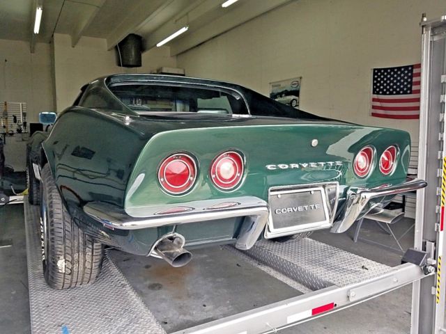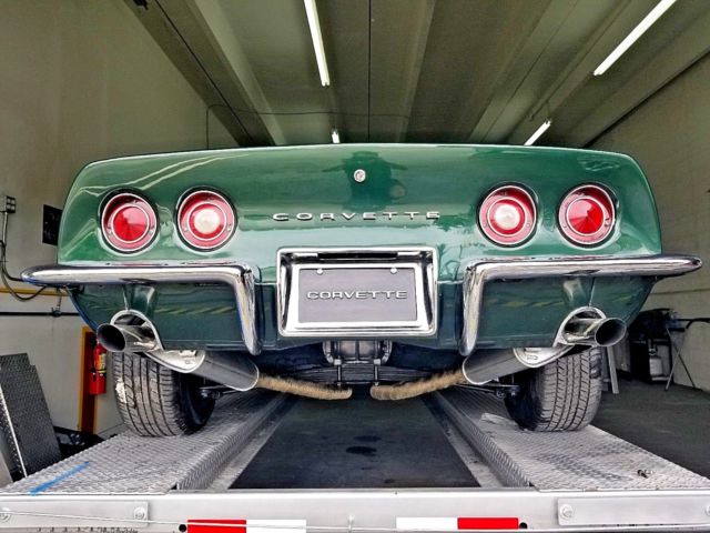 Acessories A/C, Power Brakes and Power Steering. - Excellent ConditionFresh New great paint All Body in perfect conditions MATCHING NUMBER Car. Paint color and trim color are also original colors and rare match. Engine, trans and rear end are original to the car. Number specifics as follows:L 23VIN - 194379S725691Rear Axle - AT1121W - 3.08 Ratio H.D. - PositractionTrim - 427 Fathom GreenPaint - 983 - Fathom GreenEngine 350 / 350 HP - Number - 3970010 Transmission original Muncie M22 - Number matching 4 speed with Hurst ShifterVehicle specifics as follows:Corvette ' Matching paint color. Both inside and out very nice.Paint is original Fathom Green Metallic color. Paint is fresh. Car is very straight and all gaps are even. Bird cage and windshield frame are excellent. Frame is in great condition. No rust anywhere. The new door rubbers ,inside and outside mirrors, door handles .Vehicle mileage - 91,000 original milesAll chrome is in great shape,no scratches. Custom Air conditioning -all components are new Engine - Number matching 350 /350HP. Engine and transmission just removed clean and paintNew gaskets ,water pump, distributor,cables, spark plugs, a/c compressor ,water hoses, gas pump ,belts New aluminun radiator and extra fan.( No over heating issues.) Power brakes - . Power steering - Steers good. No pull. Front end tightExhaust 8x2 cover with titanium insulation in perfect condition. Classic Tires Dunlop Gt Qualifier 245/60-15 .Clear title.keep in dry garage all time i have many picturies just askCar is available for inspection by appointment only in Pompano beach Florida/ close 95 .Buyer responsible for pickup or to arrange shipping. Can assist with loading.Im not car dealer ,Vehicle sold as is, no warranty.Issues / i dont have the original radio / need check turn lightsPlease do not send me a consignment message with any Dealer, I am a private owner I dont have no interest sorryThanks for lookingcheck video on you tube https://youtu.be/xUPbzKCVJhQ