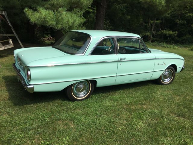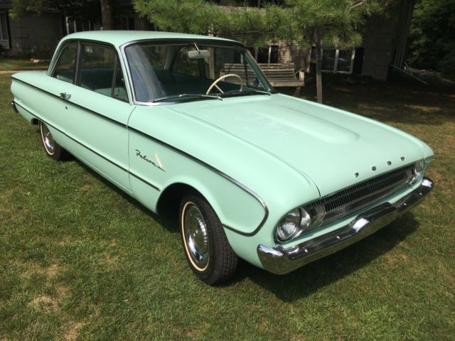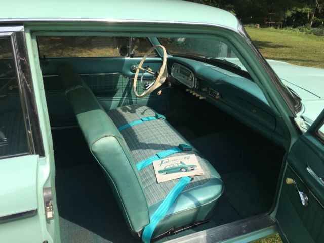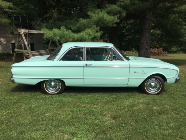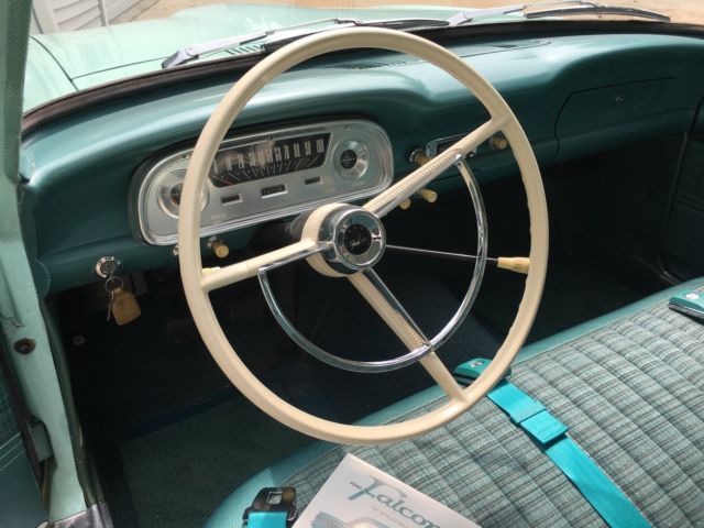 It has 97,000 miles but has been so well maintained and cared for, it looks like it might only have a fraction of that. Just look at the pictures. I'm amazed a car this old can be in this incredible condition. It has the standard 144 cu in 6 cylinder that starts right up and purrs like a kitten. I just rebuilt and adjusted the 1 barrel carb. The trans shifts smoothly. The steering is manual and feels very solid. The brakes stop well. Overall this little Falcon runs and drives as good as she looks. Just to make sure everything was totally up to snuff I put on a new full exhaust system, a new battery and detailed the engine compartment. The trunk emblem was faded so I replaced it with a quality reproduction. I even hand painted the white lettering on the hub caps because they were chipped a little here and there. I have the radio that came in the car when I purchased it but I decided to upgrade to a RetroSound AM/FM radio and new speaker. I also installed color coordinated seat belts up front for safety's sake. I have a pretty decent sized collection of cars in my stable and I just have not been able to drive her as often as she deserves. It's time for a new owner to take over the reigns and continue to drive and care for her. I am proud of my 100% positive feed back and I've tried to describe this beautiful little Falcon as honestly as possible. I'd be happy to answer any questions you may have. The buyer is responsible for shipping but I can assist the shipper in loading etc. Thank you.