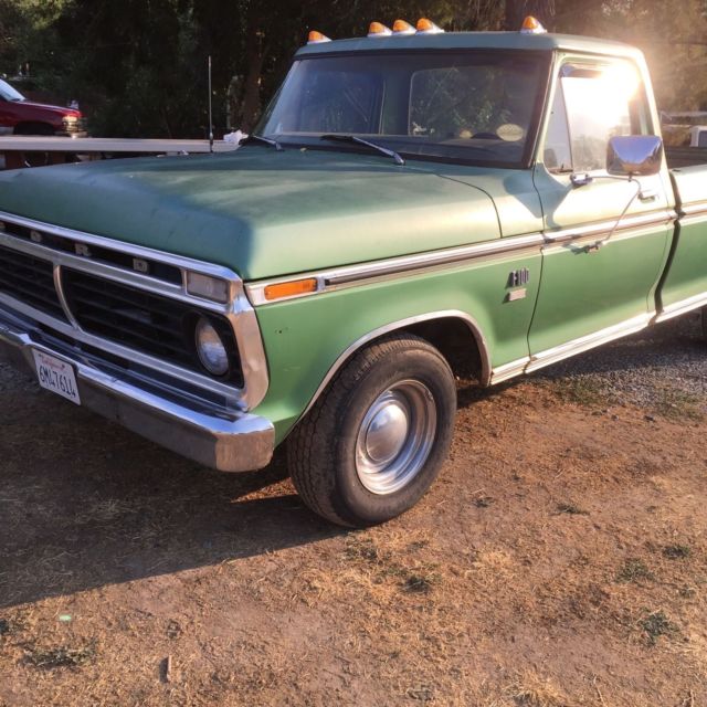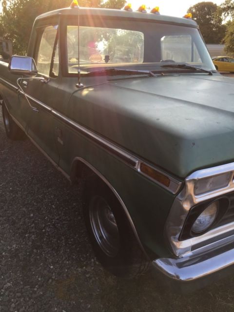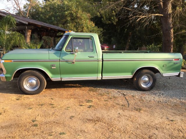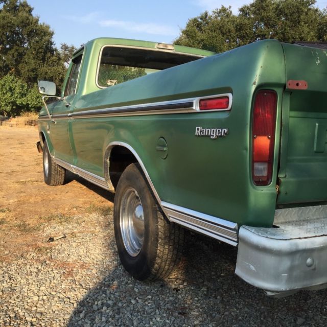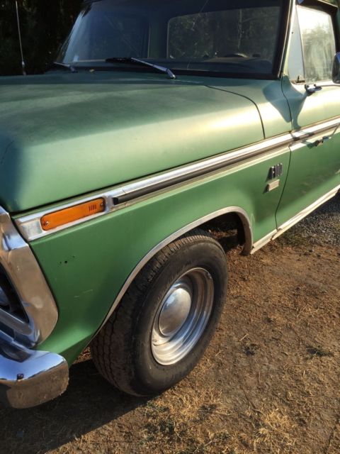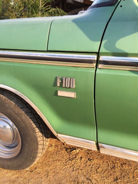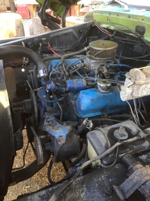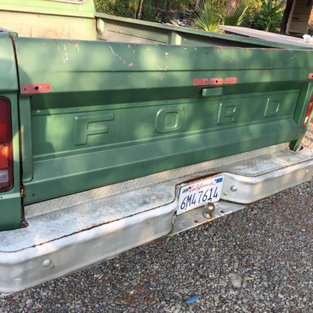 1973 ford truck speedometer shows 98,527 miles more than likely it has turn over at least onc,No Rust that goes through,Bottom bed has surface rust as you can see in the pictures,has power steering,power brakes,v8 390 engine was rebuilt years ago with about 20k miles on it,No paper work to show it,This is what the previous owner told me about it,has headers,dual pipes coming out on side of bed ,automatic transmission,Radiator leaked fluid when I put it on the trailer the strap caught the bottom corner of radiator right were is welded needs to be fixed..ignition key was broken it can be started with a screwdriver i do have original keys the lock the doors. I have started it with putting gas in carburetor,it starts ok.but I don't want to use the old gas in tank ,Tailgate is off a 1972 or older ford, truck has been sitting since 2004. No title sold with bill of sale. Previous owner lost Title.. In California to register there is a $766 fee,But if you take it to another state I was told they waive the fees,please check with your DMV State to be sure. No Smog required.(Sold as Is) tires hold air And they about 7 years old they don't look weathered.l was going to use it for parts truck but its too clean to Take it apart, so I'm selling it,hopefully someone can restore it if not use it as a parts truck.If you have any questions ask.and No this truck can NOT be driven cross country... buyer will be responsible for shipping and can help load the truck NO RESERVE!!!