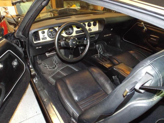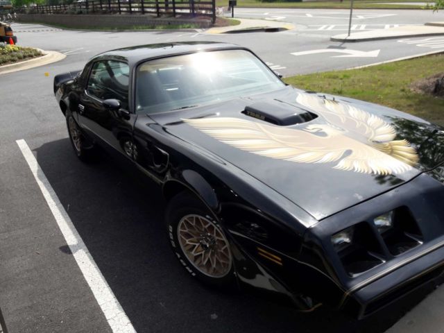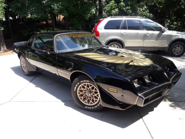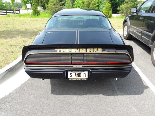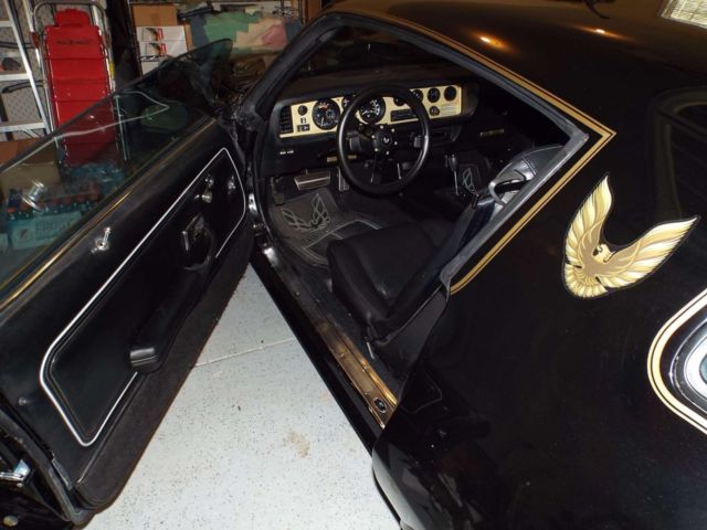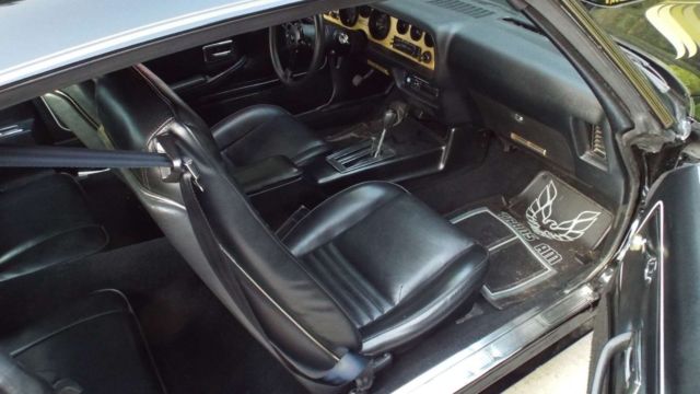 1979 Pontiac Firebird Trans AM Black/Gold with Black deluxe interior 403 Olds 6.6 liter engine 350 TH Transmission 3 speed automatic VIN 2W87K9N127716 I purchased this car here in Georgia almost 2 years ago from a Dodge dealer that had a personal classic car collection. It had been restored years previously, so I refreshed it with many original improvements. I decided to keep it as original as possible, and kept everything I replaced (i.e. original steering wheel had a crack). Factory Black on Black, with deluxe interior. Left as original as possible All gauges and lights work. Garage kept, I've put only 400 miles on it since purchase. The odometer shows 15555 but I do not know the mileage. It's rust free with one of the cleanest under carriages I've seen. This engine was just pulled out and I had all the seals replaced, new oil pan (this requires the engine to be pulled). The heads were machined by an outside shop. I had the Rochester Quadra-Jet carburetor rebuilt from a shop out in California. Leak test values available. Newly rebuilt rear end, now at 3.08 for better drivability. I have all the receipts, two custom shops in Atlanta performed the work. I have the PHS documentation. I have the original ownerâs manual. I do not have the spare for the car, but I have the original jack with accessory pieces. The seats are in incredile condition for being original. Items: - Heads machined by an engine builder with new push rods, valves, rocker arms. - Replaced electronic new dash membrane for the cluster (those age and crack) - New neutral safety switch (reverse lights in addition) - New steering wheel - New Magnaflow exhaust system 2.5" - New Flowtech headers 1.75 primary/2.5 powder coated - New Parking brake cable rear and front, put back to GM specification - New Kick down cable - New Auburn differential carrier - New Richmond ring and pinion gear set - New bearings - New rear axles - New transmission seals - New starter - New fuel pump to avoid vapor locking - New oil pressure gauge switch - New temperature sensor - New Fan clutch - heavy duty - New oil pan and seals - New transmission cooling lines - New steering pump and reservoir - New shocks (4) - New 100 AMP alternator, the 63 AMP stock one I still have but I thought was under sized. The electrical is always at 12-13.5V - New battery tray and lock down (note most are rusted on these and mine was not) - New cluster clear plastic gauge covers - New ash tray - New A/C vents - New driver side window glass guides - New driver side door hinges - New driver side door latch switch, striker, and door lock guides - New battery - All light bulbs that were out have been replaced - New seat belts (the retractors get old after a while), front and rear - New seat belt guides