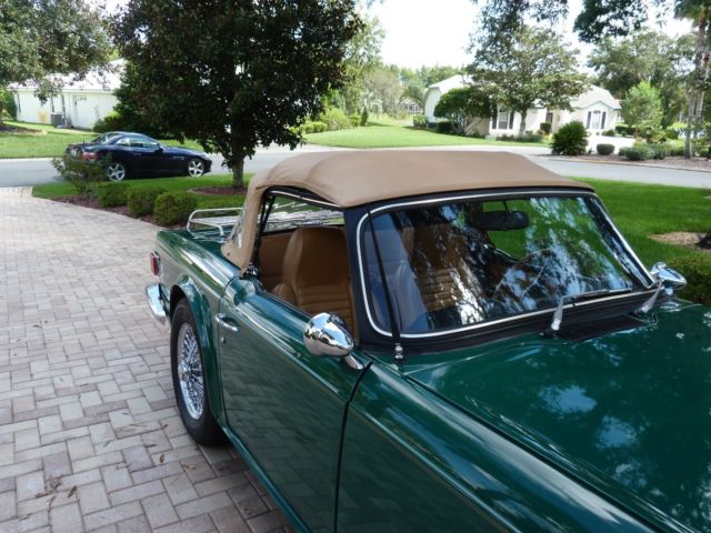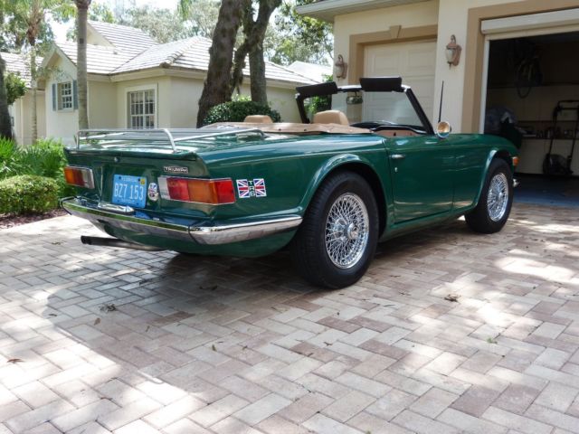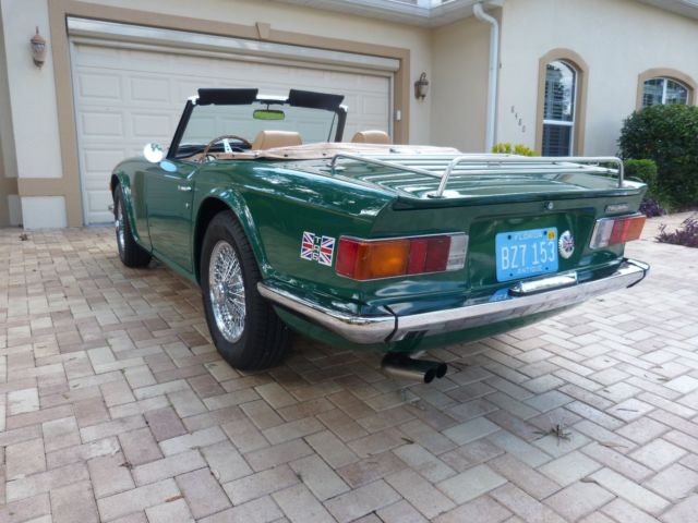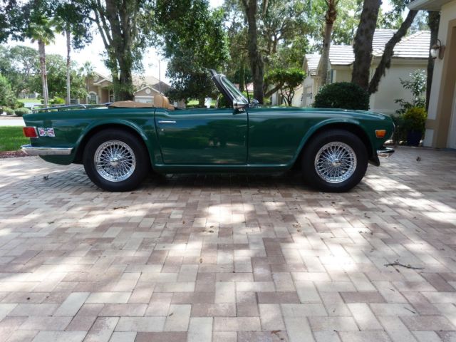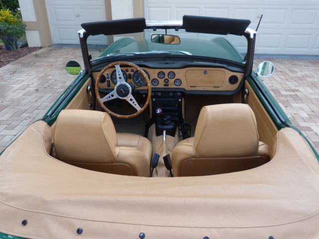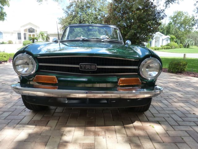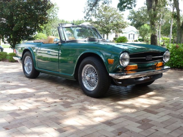 What you are looking at is 1972 Triumph TR-6 in very good condition that shows very well in local shows and with a little effort could hold its own in larger regional shows. The odometer shows just short of 41 thousand miles, but I cannot swear to its accuracy (but believe it to be true). Photos show a true representation of the cars condition, and from what I have been told, the car has been garaged since its frame on rebuild. From research I have been able gather car was purchased by its second owner in the late 1990s, for his wife. He then had the restoration done in early 2000s. the engine and transmission were pulled and gone over, a bare body repaint was done, and interior and top replaced. The next owner used the car very little and sold it to a gentlemen from Central Florida who put the car in a barn, and was and there it sat till purchased by me in 2014. Since in my care I have completed the following work, repairs and replacements to bring the car to the next level. . Distributor sent to North Carolina for rebuild. . Carburators sent to Ohio for rebuild. . 4 New Tires . Suspension front and rear rebuilt from the frame out. Shocks. Springs, Neoprene Bushing, Ball Joints, Tie Rod ends. and all Bolts Nuts replaced. . The brake system was rebuilt, new Master and Rear Wheel cylinders, and Flexible Hoses . Electric wiring was redone, lights did not work. (New Harness) . Alignment of front and rear as well as 4 wheel balance. . Seals replaced in rear end. . Fuel tank drained and cleaned. . Car also has Petronics ignition, remote oil cooler, electric fan with remote switch, and a spin on oil filter. I am sad to let this car go, as I have had several British cars over the years and this is one of the best. My age, health and the fact that my wife is not comfortable riding in the cars on outings and club events, causes me to let this car go. The car is sold where is and as is no warranty implied or given. No trades or deals. A simple you pay for the car and it is yours A non refundable deposit of $2,500 must be paid within 48 hours of acceptance of sale. Balance paid within 10 days, wired to my account. Shipping is your responsibility but I will assist with pickup I am asking $26,500, but am open to a reasonable offer, No low balls.