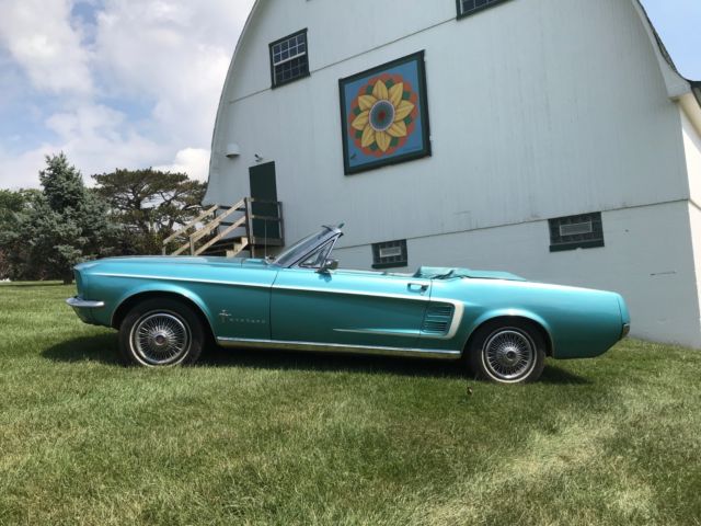 This 1967 Mustang convertible was originally white, but repainted by the previous owners. I ran the VIN thru the Marti Ford Mustang database: 472,209 1967 Mustangs were built,44,821 were Convertibles,10,784 came with the 200-1V engine,3,834 had 3-speed manual transmission,321 were painted Wimbledon White, and this was 1 ...