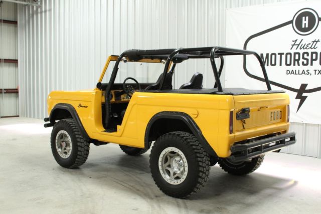 Best Offer Available1967 Ford Bronco See more photos belowTop Line InformationYear:1967VIN:U15NLA31924Make:FordModel/Trim:Bronco Condition:Pre-OwnedExterior:YellowEngine:302Interior:Black Transmission:3 Speed ManualMileage:10,572Additional Photos* * * Click Photos to Enlarge * * ** * * Click Photos to Enlarge * * *Description 1967 FORD BRONCOFrame off restorationRebuilt 302 V83 speed on the floorPower steeringLine X interior6 Point roll cageNew Walker Evans WheelsNew BFG mud terrain LT- 285/70R17Alpine Stereo with sound bar10k miles since frame off restoration At our dealership we work very hard to accurately describe our vehicles through text descriptions and elaborate photos. When you purchase a pre-owned vehicle it is not a new vehicle. Any used vehicle can have normal wear and blemishes. Before placing a bid please read the descriptions thoroughly and view all pictures. Included Standard EquipmentInteriorCarpet in excellent conditionFloormats in excellent conditionInterior in excellent conditionSeats in excellent conditionExteriorConvertible top in excellent conditionExterior in excellent conditionTiresBf goodrich tires with 100% tread remainingWheels17 inch wheels in excellent condition Hours of OperationMon: Tue: Wed: Thu: Fri: Sat: Sun: 9a - 6p9a - 6p9a - 6p9a - 6p9a - 6p10a - 3pClosed Vehicle ValuesTravelVehicle HistoryInsurance Warranty FinancingCapital One Auto Finance, America's largest online vehicle lender, provides vehicle loans to customers directly via the Internet, as well as through dealerships nationwide.Applying online is safe and easy, and it takes just minutes to get a response. Once approved, qualified customers receive a no-obligation Blank Check®, which works like a personal check and can be used to buy a new or used car or motorcycle, refinance or even buy out a lease. TermsPayment Types:Certified Funds and Institutional FinancingFees:Out of State BuyersOut of state buyers are not charged tax, title, or license. The customer is responsible for registering the vehicle in their home state. Taxes and Fees In state buyers will be charged state and local taxes, title, registration, and documentary fees. Our documentation fee is $50. All sales transactions must be completed within 5 days of auction close. Deposit We require a $1500 deposit within 3 days of winning the auction. Please call the dealership to make arrangements for payment.Terms:Auction Policies Customers with zero or negative feedback on eBay Motors please contact us prior to bidding. Otherwise, we reserve the right to cancel your bid. Understand this is only to protect the integrity of the auction. Winning bidder must contact the dealership within 24 hours of the auction close and the purchase transaction completed within 5 calendar days. We reserve the right to re-list or sell the vehicle in the event of a non-paying bidder. Buyer Pickup A representative from our dealership can be available for pickup at area airports when necessary. Buyers must schedule pickup prior to making travel arrangements. TransportFor 50 years DAS has been the industry leader - providing quality vehicle relocation services.DAS owns and operates its own fleetDAS has dedicated customer service repsDAS provides online satellite trackingDAS provides choice of open or enclosed carriersDAS offers true Door-to-Door service optionsCall Today! 800.242.6413 Huett Motorsports LLC15604 State Hwy 205Terrell, TX 75160 ©2003-2018AutoRevo- All Rights ReservedDealer Websites and eBay Templates Powered byAutoRevo