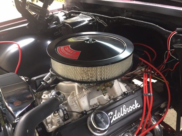 * New brake lines, drums, shoes, backing plates painted * New stock front and rear springs with 2 inch coil spacers in front and air shocks in rear * New frame stabilizer bar in rear (see photo) * GM 12 bold rear end with new seals - non posi * Rebuilt GM Saginaw 4-speed transmission - no leaks, clean and shifts perfectly (see photo). Just purchased and installed. * New GM 350 crate engine (200 hp) with new Edelbrock 600 CFM carb, intake manifold and valve covers. New HEI distributor, new water pump, mechanical fuel pump, and power steering resevoir. * New plugs, wires, aluminum radiator. * New Summit headers with brand new dual exhaust with chrome tips that come out in front of rear tires. Dynaflow mufflers. * New radiator crossmember and inner fenders. * New front shocks, ball joints, and all steering components. Installed new column with steering box and new steering wheel. * New hi torque starter with new wiring. 1 wire internally regulated alternator. * Installed heat unsulator/sound deadner and new black carpet. * New tachometer and triple gauges - all work. * New door seals, new driver and passenger side windows with felt, etc. * New BF Goodwrench 35 inch tires - less than 50 miles on them. This has been a project car bought I purchased another vehicle so I need to sell this one. The truck runs perfectly. No issues whatsoever. The engine and trans have less than 50 miles on them. What does the truck need: Body is straight but paint is 7 out of 10. No horn, needs speedometer cable and radio. The heater was disconnected when motor was installed but was not leaking at the time. Has a few scratches and blemishes on tailgate. IF you want other photos or anything, please don't hesitate to ask.