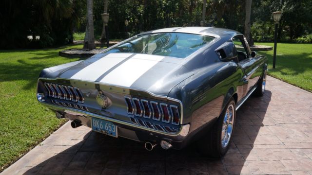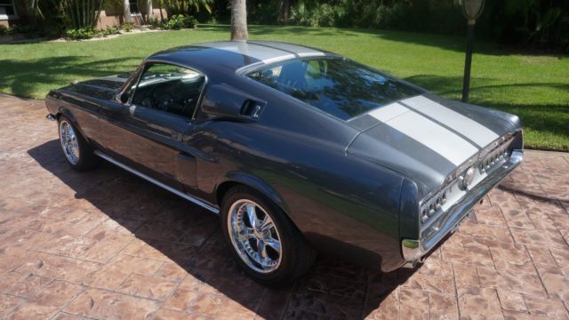 1967 Mustang Fastback Exterior- Metallic gray with silver racing stripes- Shaved door handles- Custom front grill and Rear Tail Lights- Ram air hood scoop- 17â Foose Chrome Nitrous wheels Interior- Cobra Misano Leather/Carbon Fiber seats- Custom Leather rear seat- Custom one of a kind Leather Center Consol- Auto Meter Phantom gauges- B&M Hammer Ratchet Shifter- Classic Auto Air A/C system - Powder coated Roll Bar- Schroth Ralley Cross Harness belt front restraint system- Alpine stereo: IVA W505 mobile media station PDX-4.150 4 channel amp 4- Type R 6â speakers PDX-1.600 mono amp 1- Type R 10â subwoofer Rearview backup camera Rockford Fosgate capacitor-Interior Sprayed with LizardSkin Sound control & Ceramic Insulationj Powertrain- ATK Stage 1 Ford 351 Windsor Engine 385HP 410 lb/ft torque Edelbrock Alum. Performer RPM 60cc 2.02/1.60 cylinder heads 4.040 x 3.500 Bore/Stroke OE crank and Rods Hypereutectic Flat top pistons with Molly Rings 9.8:1 Compression Ratio Hydraulic Roller camshaft Camlift .512 int./.512 exh. Cam duration @ 0.50-220 int./224 exh. Billet Alum. Rocker Arms 1.6 Full Roller- Edelbrock ProFlo 2 Electronic Fuel Injection system- Billet Specialties Tru Track Serpentine Belt system- C-4 Automatic Transmission with Cooler and Temp gauge- Electric Hi Power Duel Cooling Fans with controller- Detroit Locker Positive Locking Differential Suspension and Brake- Total Control Products Monte Carlo Brace Stainless Tilt Steering Column Rack & Pinion Power Steering Upper & Lower Control Arms Tie Rod Adapter set Heavy Duty Billet Adjusting Sleeve Adjustable Strut Rods Full Front Coil Over Conversion VariSpring Front Shocks- Rear Air shocks- SSBC 4 Piston Front & Rear Power Brakes- SSBC Billet Master Brake Cylinder with Stainless lines Misc. Highlights- Complete new wiring - Custom Upholstered Truck - Power Steering & Brakes- Electronic Fuel Injection- Electric Brake Vacuum Boost- Power Windows **LESS THAN 700 MILES ON ENGINE** If you would like to see more photos or schedule to see car please contact me Thanks