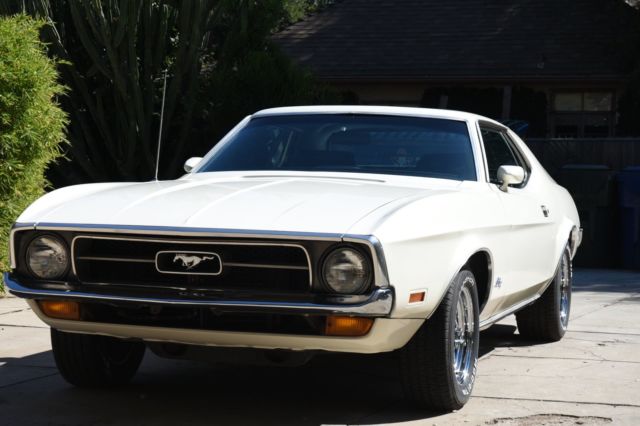 Here for sale is clean rust free 1971 Mustang Grande. This car is a great example of a Second Generation Mustang survivor (1971 thru 1973). This is basically a one owner car. I bought it from the Grandson of the lady (Eleanor no kidding) who purchased it new in 1971. I have the original documents to prove it. The 302 starts and runs smoothly at the turn of the key. The trans shifts smooth and firm no slippage or clunking. I'm sure the odometer has gone around once, but for 1971 it's still very low mileage. This car is a great candidate for a restomod or it could easily be restored to show condition or just drive and enjoy. The floors and all panels are rock solid with only minor surface rust in spots. Offered at a reasonable Buy it Now price or reasonable reserve for bidders. I'm selling it because I want to finish my Bronco, and can't have both. Things I've added: 1. New Genuine Magnum 500 wheels 2. New BFG Radial T/A tires 3. New dual exhaust with a cross over and Flow master Mufflers 4. MSD 6al ignition, distributor, wires and plugs. 5. New shocks all around.