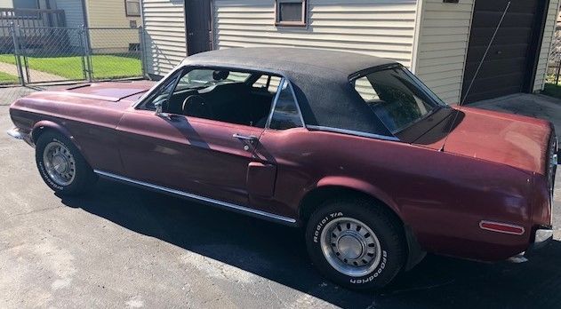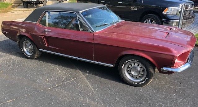 1968 Ford Mustang Coupe: It has 112,000 miles, does need work but runs, drives, and stops. It needs some exhaust work and the (2) rear frame rails will need to be replaced along with both torque boxes. There is hole in the trunk on the driver's side from rust (see pic) but everything else is pretty decent the floor pans has some surface rust. The rockers and shock towers look good. Everything else on the undercarriage has surface rust but is solid. It has a 289 (V-8) I was told that it is the original engine and 4 bbl Holly carb with (3) speed automatic transmission. It also has some "GT" options with side scoops and GT wheels and rear valance GT cut outs for the dual exhaust. It has new tires, an aluminum radiator fan, oil cooler, master cylinder, brake lines, some new hoses, rear air shocks, new battery, new gas tank, it also has power steering but manual drum brakes. The dash pad looks great, the carpet looks good, the seats are from an 80's Mustang and are in good condition. The black vinyl top is beautiful with no rips or tears, all the glass is intact and the windows crank up and down. I have a clean green Michigan title. I will not pay for shipping but if you arrange for shipping, I will get the car to the auto carrier in the township where I live.