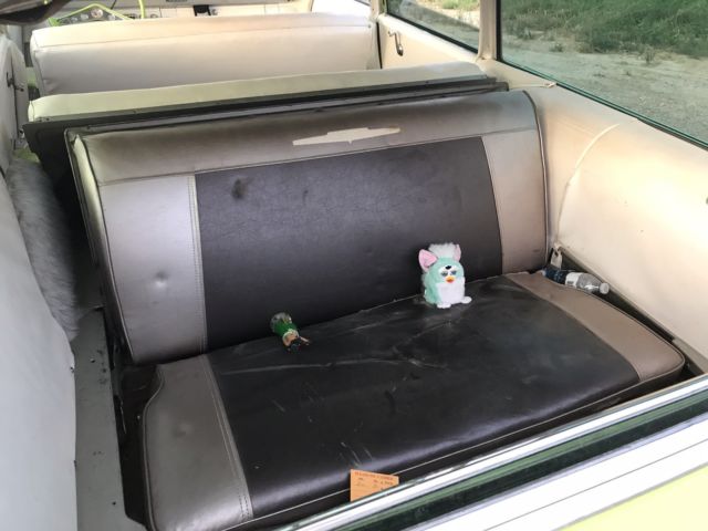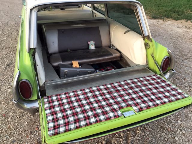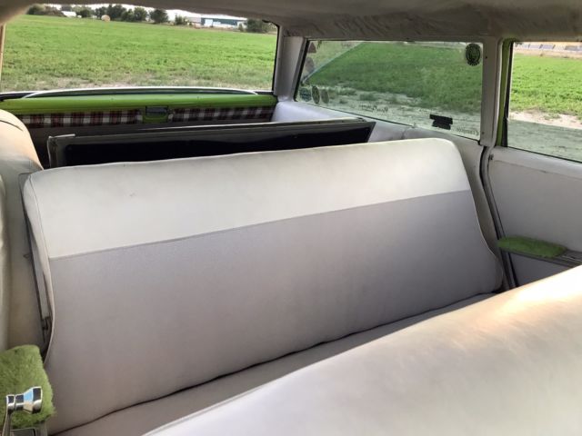 -White fur headliner and dash!-Some of the best pinstriping I've seen-Kustom grill (door knobs ;)-Everything works, heat, rear window, all that good stuff. Except the radio :( Gas gauge is a little tempermental but does work-59 Impala steering wheel-Shaved rear doors-glass packs-heat works great! Bought it on a snowy day and had to turn the heat off it worked so well.-3rd rear facing seat is original upholstery-Fairly rare roof rack and I have used it :)-H-A little rust in the frame just in front of the front doors...but nothing structural. Do not notice any flexing issues when parked on uneven surfaces or anything like that!-The body has had some mediocre work done..someone attached quarters on the original ones but you wouldn't notice unless you look close. And cheap paint. Dings here and there...a little cracking in dog legsI have:OG grill, all flat pieces to lay the seats down, OG hub caps, some other odds and endsCar is lowered via cut coils long before my ownership...it has coil springs on all 4 corners which makes this a perfect/easy candidate for air ride!I'm a single dude...this wagon would be a great family cruiser, kid hauler, crafts machine, picnic table, camper, rocket shipAsk any questions!308 390 8915, call or textFolks have asked...so the two bucket list cars I'm looking at are projects. A 53 Ford Victoria and a Model A pickup