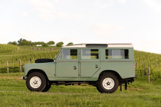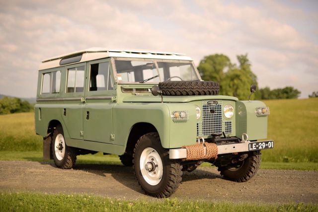 1965 Land Rover Series-IIA 109 Solihull-built and sold new in Lisbon, Portugal. Lived in Portugal until 2016. Left hand drive, 2.25L Petrol engine. Restored in the mid 1990's. Truck presents beautifully and is ready to be driven. Driveline. The 2.25 L four-cylinder gas motor starts easily and pulls the truck beautifully. The original Solex carb was replaced with a Zenith unit in 2016. The truck can do about 55mph on a flat stretch of highway. Engine is mated to the original four-speed transmission, which shifts without issue. Truck has high and low range transfer case, as well as both 2WD and 4WD. Has Fairey locking hubs installed on the front. All five Carmac 700-16 tires were installed in 2016. The transmission and differential fluids were replaced at the same time, as well as new brakes in all four corners. Exterior. The Grasmere Green paint presents beautifully under an Alaskan White roof. Body panels are about as straight as they get for an old Land Rover, and the truck is free of dents and scratches. The galvanized trim is exposed, and common rust areas such as the bulkhead, floors, crossmembers, and doors are all dry and straight. Interior. The interior is finished in a black vinyl. The truck is currently configured to seat ten, including the rear-opposed facing jump seats. Gauges and lights are functional. Floors are clean and rust-free; the interior was painted along with the exterior and presents nicely. Doors shut firm and latches engage as they should. Truck has a safari roof which helps channel air into the cabin with the ceiling-mounted vents. And that windshield â itâs the worldâs best picture frame. Put yourself behind the seat and stand in awe as the world unfolds and comes alive through that front glass. You pick the spot. The Rover will do the rest. Fine print. Vehicle available for sale thorugh Commonwealth Classics LLC, a duly-registered Virginia dealer. Vehicle is located at 8382 W Main St, Marshall VA, 20115. We do our best to photograph and video vehicles as well as we can, but encourage buyers to come and visit the showroom for a test drive whenever possible. Can't make the trip? Ask for more information if it'll help. We can always send more photos and videos. Vehicle was 100% legally imported and conveys with a Clear Virginia title. Payment accepted by Bank (Wire) Transfer and/or Certified checks. Sorry, no personal checks or cash, please. Buyer is responsible for pickup or transportation, but we can help coordinate ground transportation or trucking to your house. Just ask for a quote. Thanks!