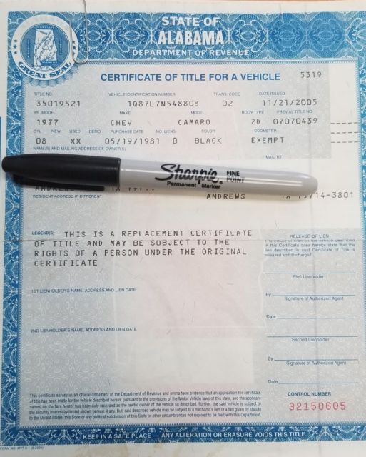 I already own another 77 Z28, so I'm looking for another project; therefore, I have no need to keep this one from being loved and restored by someone else. This vehicle has not been on the road for a couple of years, has not been started in over 1 year. Does have new fuel pump and alternator, complete engine and transmission and differential, interior complete, body complete less cosmetic items. Does need full restoration, has rust in floor pan, rust near window trim on driver side quarter, rust in driver side door jamb, rust on other exposed surface areas that is repairable.This is a true Z28, as noted on cowl tag, originally black on black(19L/19U/BLK). 1977 was the year that the Z28 returned to production, after nearly 3 years of absence. 1977 is the 10th anniversary for Camaro, and the first year that Camaro outsold Mustang, all data available at NastyZ28.com . This car does have Factory AC, which needs repair, and a compressor. As noted in the pictures, exterior body it's pretty straight, with no signs of structural damage, just needing repair on the rust areas.Vehicle is sold as is, where is, buyer responsible for pickup or shipping, currently stored in a locked yard, in Del RÃo, Texas. Title, and bill of sale. Contact me via eBay communication if you have interest in different, or specific pictures, or have any other questions.This car is for sale locally, so I reserve the right to end auction anytime, unless reserve has been met.
