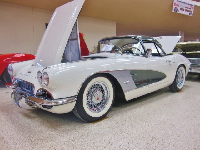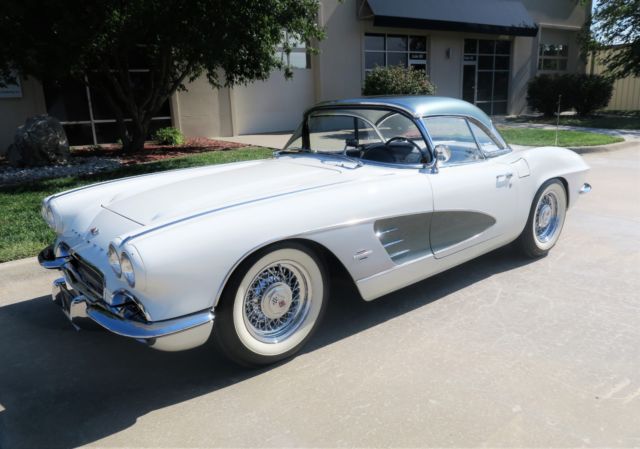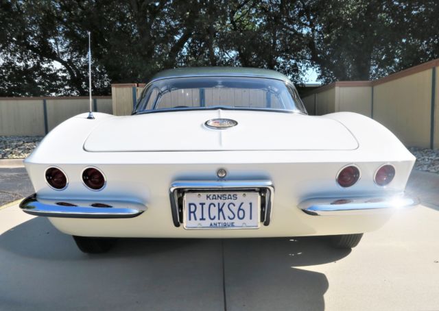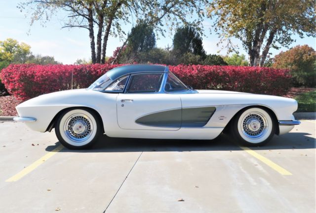 This 1961 Corvette's pedigree includes...Best of Show, Mayors Choice, Best Paint, Best Interior, Best in Class. This corvette has become well known on the show circuit and is now available for purchase. This car has been a popular "Peoples Choice" throughout it's current ownership. The car has been featured in "Wichita On Wheels" and has been used on various covers for Wichita Area Car Shows. This corvette has had a Frame-Off Restoration in 2010. The current owner had the coves painted "Mystic Green Metallic" and "Sebring Silver Metallic". A Hard Top was located (with original headliner and 1961 dated glass) and added to the car in 2011 upon it's New ownership. True-Spoke Wheels were also added with Coker Wide Whites. The car is in excellent condition both mechanically and cosmetically. It has "Perfect Chrome" all around and the Fit & Finish is what you would expect from a High End Nut and Bolt Restoration. The car's interior is an example of what these cars really looked like back in the day. The seats and dash are vinyl and the carpet is the proper "green". The motor is a new 350 with 330 Horses and it is FAST. Excellent compression allows his car to start out in 4th gear. The clutch is tight and the torque this engine musters will leave 'fishhooks" on the pavement.There is a rising demand on C1's and this particular example is a 1 of 1 that is handsomely presented. This corvette is "Money in the bank, and it's value is only going UP!" Call Rick at 316-789-8721 and leave message.