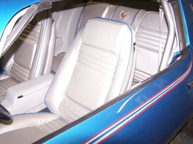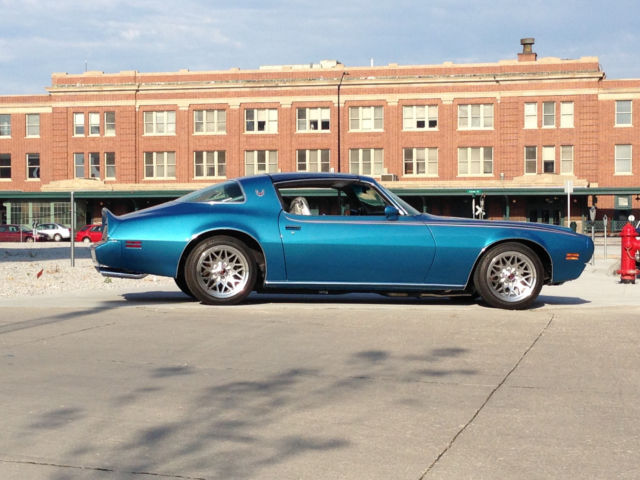 DOWNSIZING SALE 1979 10th Anniversary Trans Am made to look like a 1972 Formula. An amalgam to put all of what I found best in 2nd Gen F-Body into one car. EXTERIOR (On frame restoration by Musclecar Memories Restorations Lincoln, NE) · 1979-1981 Smoked full width tail lights. · 1979 Fisher mirrored T-Tops. · Pre-1979 angled edge rear spoiler. · 1972 Firebird Formula front clip with functional fiberglass Ram Air Hood & Air Cleaner. · 1973-75 Aftermarket 17â Honeycomb wheels w/ 1974 Chrome Exhaust Tip. · 1979-1981 Aftermarket 17â WS6 Snowflake deep dish wheels w/ 1977 Splitter Exhaust Tip. · Lucerne Blue paint w/full body edge bright work, hand painted Firebirds on nose, sail panels, rear spoiler and factory stripes and of course the flamed formula hood scopes INTERIOR (On frame restoration by My Musclecar Memories Restorations in Lincoln, NE) · 1979 10th Anniversary Leather interior with embroidered Firebirds. · Enhanced with GM Design Executives one-off contrasting piping, kick panels and carpet. · Enhanced with One-of-One Trans Am contracting door jamb color. · 1979 10th Anniversary red instrument lighting for full instrument cluster and 5,500 redline Tach. MUSCLE · 1974 Pontiac Super Duty 455 heavy duty block w/ correct casting 480132, date code 0294, block cast '132' and serial #84904. Block was service part purchased in 1994 and installed in 1973 Trans Am donor car. In 1973 & 1974 SD 455 Firebirds were considered the quickest cars in a quarter-mile in North America if not the world. CHASSIS · 1979 WS6 handling package, quicker steering box, thicker sway bars, stiffer poly bushings & 4-wheel disc brakes. From 1979-1981 WS6 equipped Firebird were considered the best handling cars in North America exceeding .8g laterally. OTHER IMPROVEMENTS (Engine build by WAM Power, Omaha, NE) · SD - 455 bored and stroked to ~500 cu in; Edlebrock aluminum heads and GM aluminum intake; custom grind roller lifted camshaft & 6,200 RPM Redline, >500HP @ 4,500 RPM & > 600 # Ft @ 3,000 RPM. · Aftermarket Tremek 5-speed transmission. No idea about MPG since odometer doesnât work! · Lightened driveshaft w/safety loop w 3.23 Posi-traction rear end.· 4-point roll bar, sub-frame connectors, solid body mounts and steel control arm bushings. · Fully adjustable upper A-Arms with track alignment. · Front Coil-Over conversion; Springs @ ~700#/in, stiffer rear springs with Delrin bushings. · Larger front brake rotors, Corvette calipers and track pads. · Rear track pads on stock disc brakes. · A couple of cool dash mounted rocker switches for engine start enable circuit security. NOTABLE · Clock doesnât work -duh! · Personally I never get tired of looking at the shape of 2nd generation Pontiac Firebirdâs. · Removed 10th Annv. Screaming Chicken decal (largest ever) in favor of dual scoops Formula hood with subtle flames in platinum.