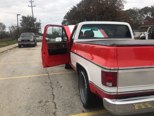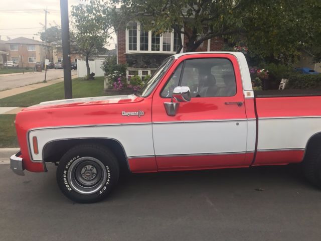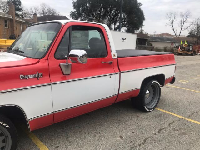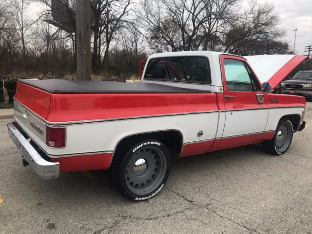 350 Edlebrock crate motor - approximately 35k miles700R4 overdrive transmission rebuilt less than two years ago.Truck has driver quality paint job that looks great for a cruiser. The paint has no rust, or pitting, or dents. The aluminum trim has a few dings in some spots but looks great for its age.The bed was spray lined at some point in its life. Still looks decent.The suspension is lowered 2 inches in front and 4 inches in rear.The interior is in good condition. The original bench seat was replaced with more modern leather bucket seats with center consoleWill also come with 15 inch Rally Wheels and Cooper Cobra Tires with lots of tread left.Recently Added - Thermostat (put a 180 to run motor cooler much sooner)New Heater Blower MotorFan clutch - replaced the original which was weekfront end rebuild kit including new upper control armsAir Conditioning - A/C now works perfectlyWheels and Tires - Detroit Steel Artillery Staggered Wheels (20x8 in front and 20x11 in rear. Rears look awesome with a deep lip. Brand new tires with custom white lettering added (Chevrolet on one side and Cheyenne on the other). They also come with chrome trim rings shown in one picture.Wood Steering wheel - Also comes with original which is in great conditionNew Steering Gear BoxCheck out these videos - https://youtu.be/jCpeMzu-AOUhttps://youtu.be/EGLT1m-MbG4https://youtu.be/I0OpVpNVR-k
