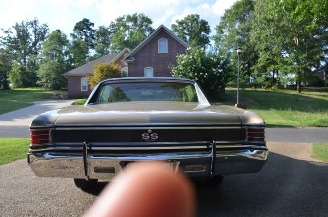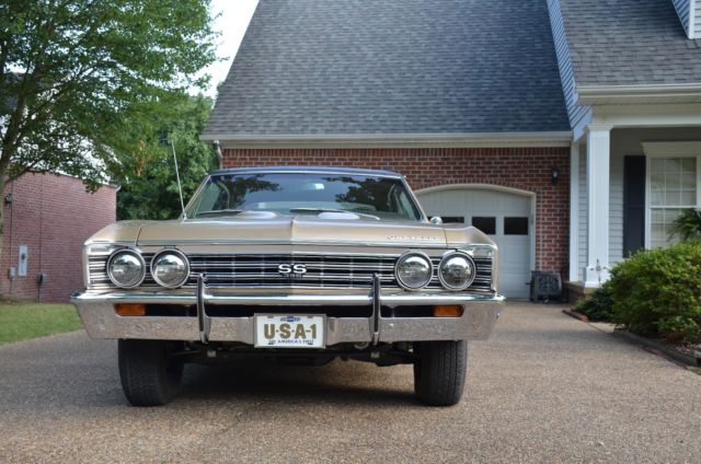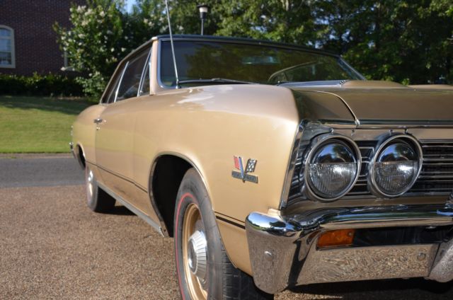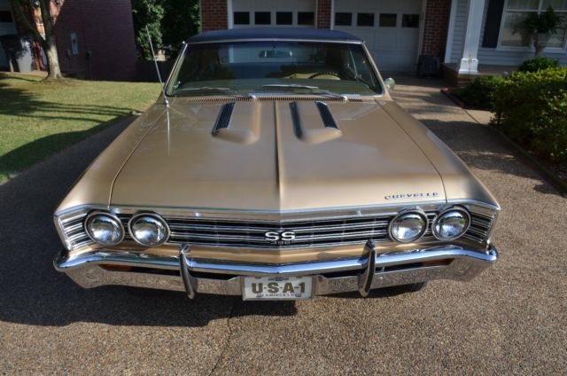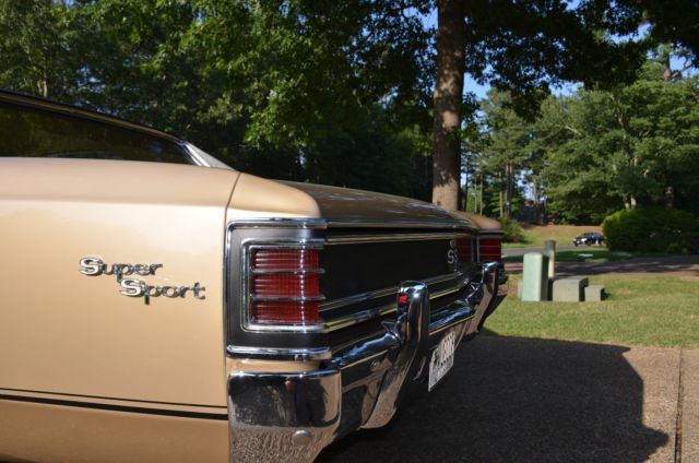 VEHICLE INFORMATION AND DECODING Exterior Color: Granada GoldInterior: Medium Gold Bucket SeatsVehicle Identification Number: 138177B181937 VIN Decode: 13817-SS 396 Coupe7-Model Year 1967B-Baltimore Assembly Plant181937-Production NumberTRIM TAG Information: 05B 338 ST 67 13817 BAL 7989 BODY TR 784 GG PAINT 183879 TRIM TAG Decode: 05A: The Chevelle was built in the first week (A) of May (05) 338: Line code for the Baltimore Plant ST 67 13817: Model year 1967 (ST 67) SS 396 (13817) BAL 7989: Built at the Baltimore Assembly Plant with Fisher body #7989 TR 784: TRIM CODE 784 IS Medium Gold Bucket Seat Interior GG: PAINT CODE Granada Gold on top and bottom 183879: Baltimore Internal Codes of no importance to the vehicle Engine Information: The block is the factory original block with casting number 3902406 which is correct for mid year 1967 Chevelle 396s. The deck still retains its original stamping which reads T0427ED 7B181937. This decodes to Tonawanda Engine Plant (T) assembled April 27th (0427) with 325hp (ED) 7 (1967 Model Year) B (Baltimore Plant) 181937 (Production Number). The heads have casting numbers of 3908802 and dates of C21 7 and C29 7. The dates decode to March 21st and March 29th 1967. The intake has a casting number of 3883948 with a casting date code of A 9 7 which decodes to January 9th, 1967. All of this is correct for a 1967 Chevelle. The manifolds are supposed to be original, but I cant find pictures of the dates on them.Transmission Information: The transmission is the original M20 Muncie 4 Speed. Baltimore built cars, unlike Atlanta built cars, had the CONVIN stamped on the top of the transmission. This "CONVIN" is a way to identify the drivetrain to the original car it came out of. Stamped on top of this transmission is 7B181937. This is the same CONVIN found on the engine deck stamp. This of course shows 1967, Baltimore Plant, 181937 (production number). The stamped code on the side of the transmission is P7D04 which decodes to Muncie year model 1967 April 4th. This lines up with the car perfectly and is 100% original to the car.Differential Information: CI 0407B EThis decodes to 3.73 ratio (CI) Installed April 7th (0407) from the Buffalo, NY plant (B) with an Eaton Positive Traction unit (E).Brief History and Background Information: This Chevelle has spent most of its life in a heated garage. All of the body panels are said to be original. I have verified the floors, trunk, quarters, hood, and fenders to be original. I never took the door panels off to verify the doors, but they are for sure GM and correct. The story goes that the car sat on the dealership lot for a while with a complete gold body from top to bottom before the original dealer decided to add the vinyl top to help the car sell. The vinyl top was on the car when sold new. To sum up this Chevelle, it is an all original car including sheet metal, original drive train, and its original interior. Included with Chevelle: ** New felt and rubber seals for windows, new breather (chrome), new carpet, trunk mat and floor mats, and new spare. New parts have not been installed to keep car original.