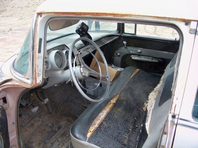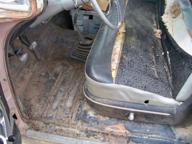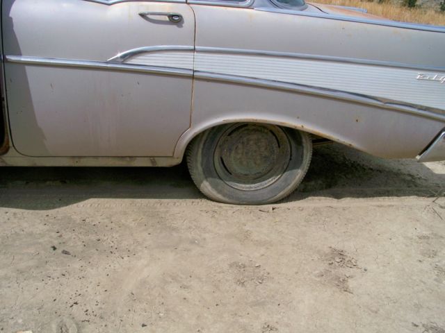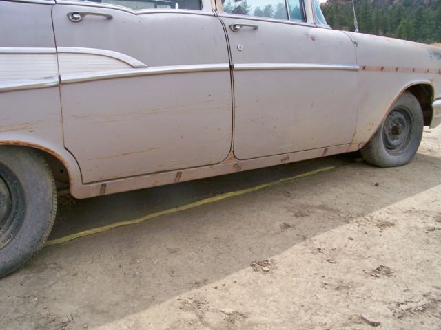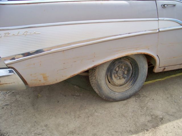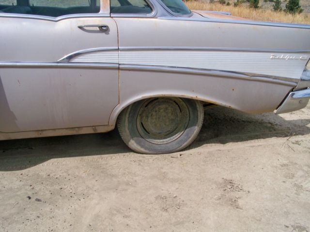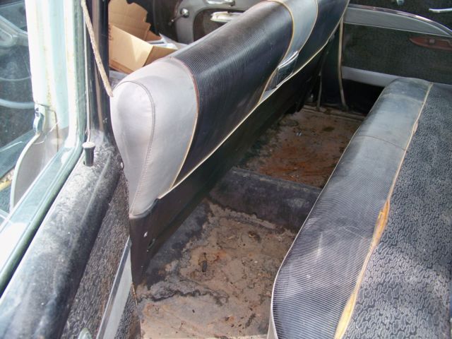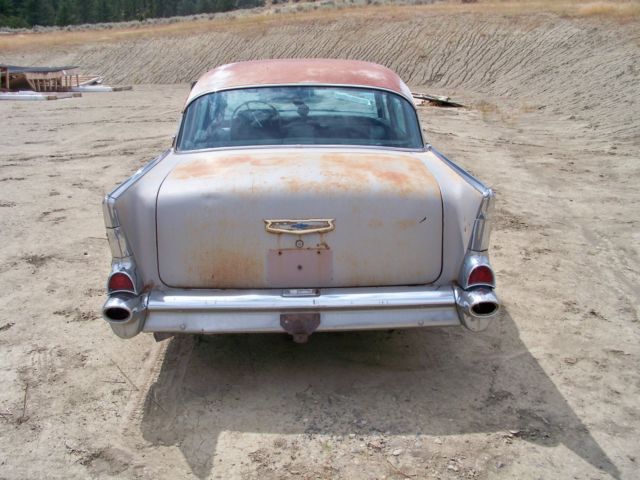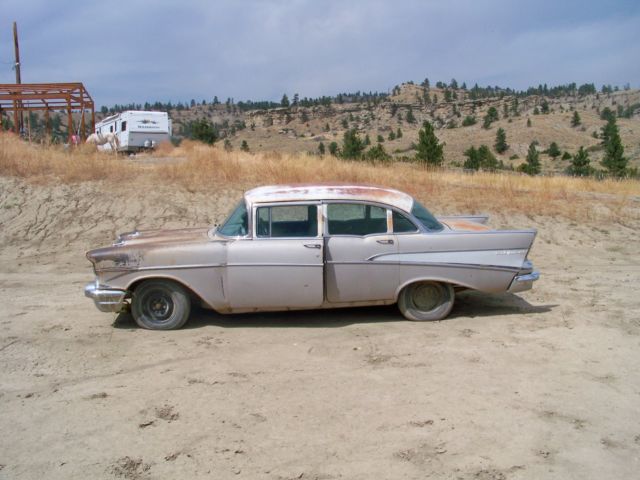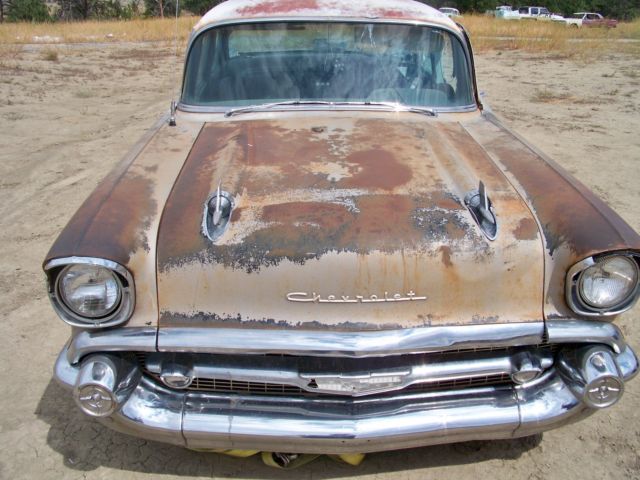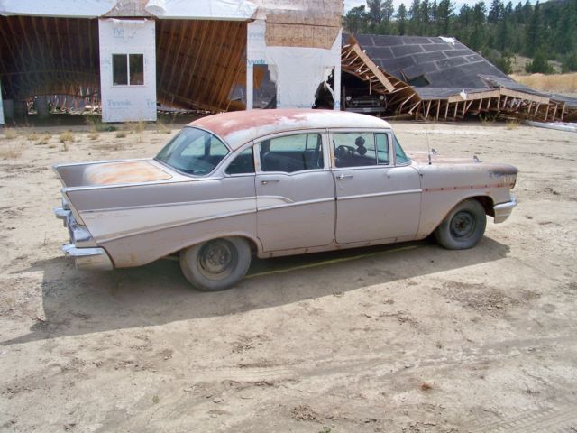 I have been restoring classic Chevy's with my dad for 24 years and this is by far the most complete and solid "BARN FIND" or project car we have ever seen.   This is a 1957 Chevy Bel Air, 4 door, true "BARN FIND". I bought this car from the daughter of the original owner of the car.  It was stored in their barn/building since 1980. The car has the original 6 cylinder engine and 3 speed manual transmission.  My dad changed the oil and filter, rebuilt the carburetor, drained and cleaned the fuel tank and put fresh fuel in it, put a new set of points and spark plugs in it, and did the brakes, new brake shoes, master cylinder, and wheel cylinders.  The car fired right up and me and my dad drove the care around town a few times (about 50 miles total) My dad did all this work to the car about 3 years ago and then he passed away and the car has been sitting since.   We had the car up on our lift and looked it over extremely close and we can NOT find ANY rust on the car anywhere, it is truly 99% rust free and has no major dents in it anywhere.  The paint is original and is faded and shows its age, the interior is also original and shows its age and wear.  But the car is 100% complete and original.  The windshield is cracked and the rear driver side door glass is cracked but all the other glass is good and all the chrome is present and in good condition.   Keep this car as is and drive and enjoy as a original "BARN FIND" daily driver or this would be a very easy and fast restoration to make it a new show car??  The options are there with this car?? The driver side front door hinge is sprung and the door won't shut all the way.  I do believe I have another set of good door hinges and if I can find them I will include them with the car. The car is sold as is with no returns.  The buyer is responsible for arranging and paying for shipping.  I will be available to take phone calls from the shipper and be available to help load the car anytime.  I need the car paid for at the end of the auction but I can store the car for free for 30 days while shipping is arranged.  Once the car is paid for I will overnight the title and a bill of sale to the new owner