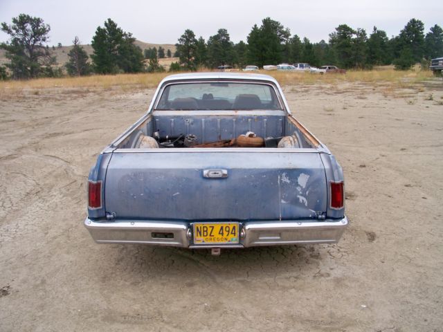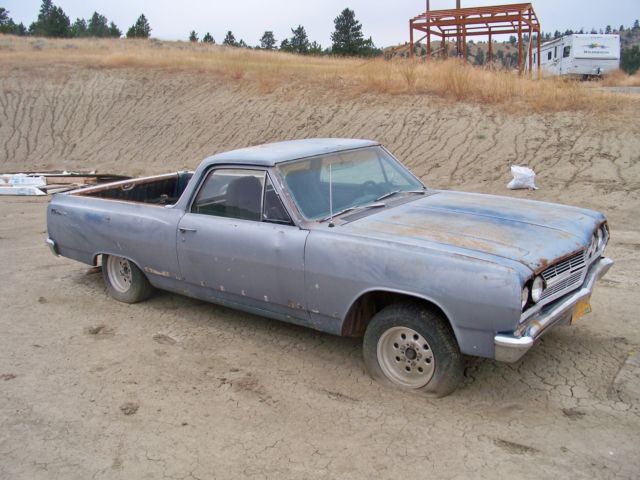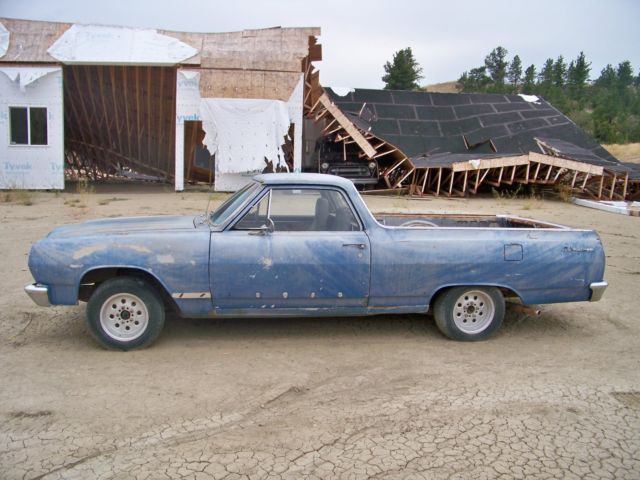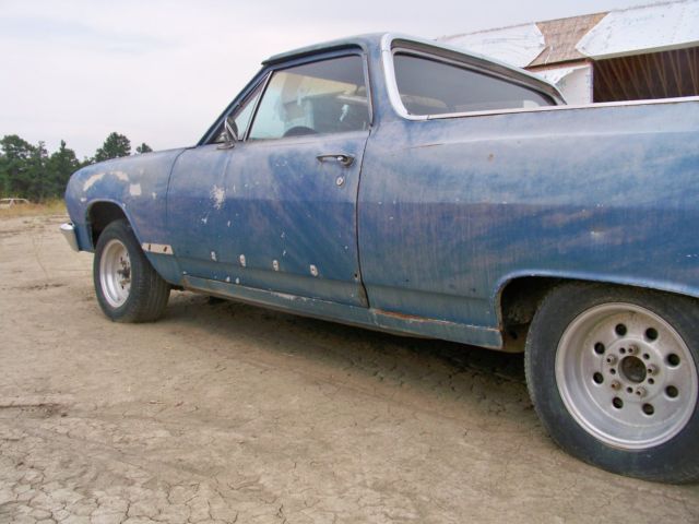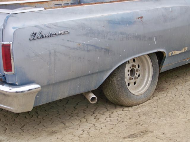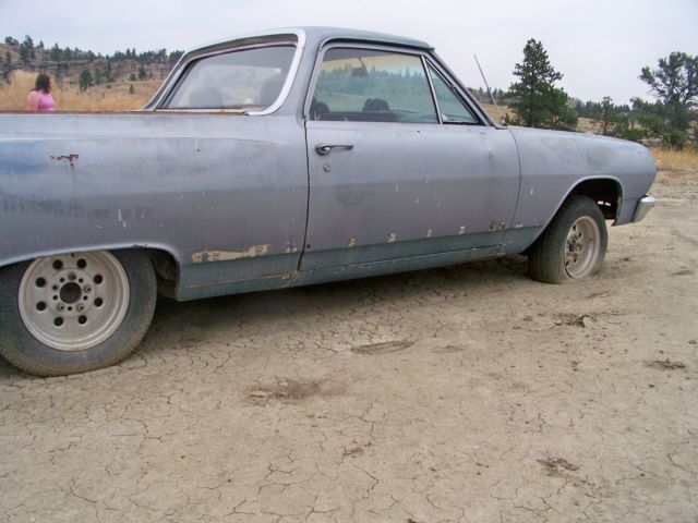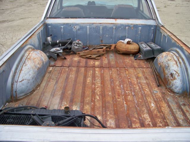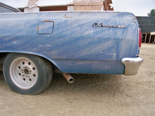 This is a 1965 Chevy Chevelle El Camino. I have looked the car over and from what I can see it is in REALLY good solid condition. There is no rust holes or rot that I can see. It is very straight with one small dent in the tail gate but that's about it. There is no broken or cracked glass. It is set up for a small block Chevy, headers and exhaust and everything is there to just drop an engine in it. It has a turbo 350 and a B&M shifter and after market bucket seats. It wouldn't take much to drop a small block Chevy in this car and have a decent daily driver or it would be a fast and easy complete restoration to make a nice show car. There is options with a car as nice as this one. At some point someone did a little fiberglass work on the cab floor, they did a really nice job and it is really solid. I do have a rebuilt 350 out of a late model 1990 Corvette or a 400 small block Chevy with vortec heads on it with about 40,000 miles that I will sell the new owner of the car if they are interested. They are not included in the sale but will make a good deal if interested. The car is sold as is with no returns. I need the car paid for at the end of the auction but I will store the car for free for up to 30 days while shipping is arranged. Once the car is paid for in full I will overnight the new owner the title and a bill of sale. Shipping is to be arranged and paid for by the buyer but I will be available to talk to and help arrange the pick up time and will be available to help load the car.