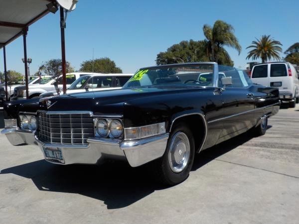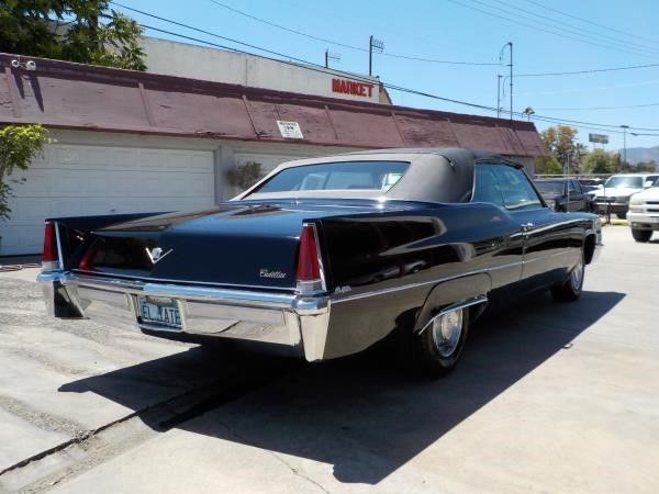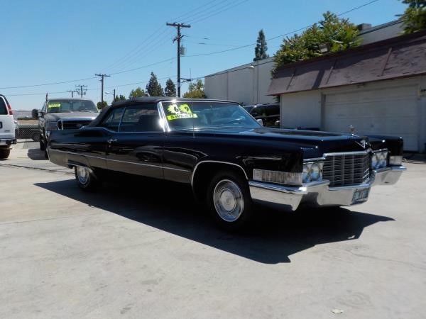 UP FOR SALE IS A VERY NICELY RESTORED 1969 CADILLAC DE VILLE CONVERTIBLE.  THE 1969 WAS THE SECOND TO LAST YEAR OF THE BIG REAR WHEEL DRIVE CADDY CONVERTIBLES AND THE LAST YEAR USING REAL WOOD VENEER ON THE DASH AND DOOR PANELS.  IT IS VERY HARD TO BEAT THE RIDE OF THE OLD LONG WHEEL BASE CADDYS AS THEY RIDE LIKE DRIVING A LAZY BOY RECLINER DOWN THE ROAD.  THE FOLLOWING WORK WAS DONE TO THIS CAR. REBUILT 472 COMPLETE INCLUDING BEARINGS, HEADS, VALVES, CAM, WATER PUMP, OIL PUMP, GASKETS, SEALS, ETC. REBUILT 400 AUTO TRANSMISSION - SMALL LEAK AT SPEEDO CABLE NEW 4 CORE RADIATOR REBUILT ALTERNATOR REBUILT A/C COMPRESSOR NEEDS RECHARGING GREAT HEATER BLOWER MOTOR WORKS REBUILT CARBURATOR NEW HOSES, BELTS, FILTERS AND FLUIDS ALL FRONT END BUSHINGS, TIE RODS, SHOCKS, AND ALIGNMENT DONE NEW BRAKES, ROTORS, DRUMS, BRAKE LINES, AND BEARINGS AND SEALS EXHAUST SYTEM AND RESONATOR REPLACED AS NEEDED ALL NEW BULBS AND SEALED BEAMS ORIGINAL AM/FM RADIO AND CLOCK WORK POWER SEAT NEEDS TO BE CHECKED MAYBE JUST FUSE HORN WORKS BUT HORN BUTTON ON STEERING WHEEL DOES NOT NEW FRONT AND REAR SPEAKERS NEW BATTERY NEW WIPERS 5 NEW BFG GOODRICH STEEL BELTED RADIALS NEW CARPET REUPOLSTERED ALL NEW RUBBER TOP, WINDOWS, DOORS,HOOD AND TRUNK NEW TOP AND NEW BACK GLASS NEW TOP MOTOR NON STOCK TOP SWITCH ORIGINAL TANNEAU COVER ALL POWER WINDOWS WORK UP AND DOWN DOOR PANEL VENEER REVARNISHED ORIGINAL DASH NO CRACKS ORIGINAL DOOR PANELS NO CRACKS REPAINTED TRIPLE BLACK HAND BLOCKED AND SANDED SOME SMALL SCRATCHES/DINGS FROM USE ORIGINAL BUMPERS, CHROME AND SIDE MOLDINGS ORIGINAL SKIRTS AND HUB CAPS APPROXIMATELY 12K SINCE DONE - GARAGE KEPT - DRIVEN MONTHLY CAR DRIVEABLE TO ANYWHERE CURRENT TAGS AND REGISTRATION CHP INSPECTED CLEAR CALIFORNIA TITLE - CAR WAS PURCHASED IN CALIFORNIA SOLD AS IS WHERE IS NO WARRANTY NO RESERVE PLEASE CONTACT WITH ANY QUESTIONS BUYER PAYS FOR SHIPPING  -  LOCAL PICK UP OKAY  - $500.00 DEPOSIT DUE UPON WINNING BID  -  BALANCE DUE  WITHIN 72 HOURS