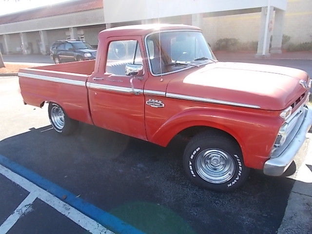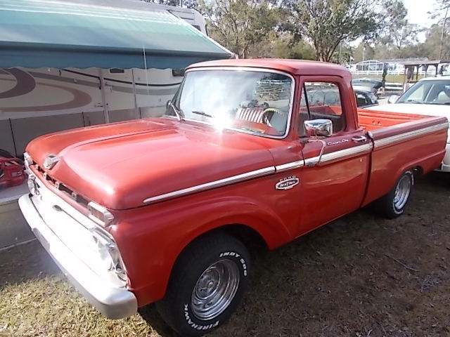 1966 FORD F 100 CUSTOM CAB TWIN I-BEAM ORIGINAL 352 CU IN 3 MANUAL SPEED ***THIS VEHICLE IS FOR SALE CALL WITH OFFERS ...........OR HAVE FUN BIDDING. ****IF INTERESTED IN DISCUSSING PURCHASING THIS GREAT TRUCKCALL......386-481-4680ATTENTION OUT OF COUNTRY BUYERSWE WELCOME ALL EBAY MENBERS BUT REQUIRE OUT OF COUNTRY BUYERS CALL PRIOR TO BIDDINGCALL US AT 386-481-4680 UP FOR AUCTION IS MY FORD 1966 F-100 CUSTOM CAB LOCATED IN DELAND FLORIDA (15 MILES WEST OF DAYTONA) THIS TRUCK GETS A LOT OF ATTENTION WHERE EVER WE GO WITH IT. BIGGEST THING PEOPLE SEEM TO LOVE IS IT'S ORIGINAL CONDITION POWERED BY THE LEGENDARY 352 CU INCH WITH 32,000 DOCUMENTED MILES NOT 132,000 BUT 32,000 MILES AND DOCUMENTATION COMES WITH TRUCK. ENGINE RUNS PERFECT AND MAINTAINS 40 LBS OF OIL PRESSURE (LEAKS NO FLUIDS WHAT-SO-EVER) THIS FINE CLASSIC TRUCK WAS OWNED BY A 85 YEAR OLD DOCTOR HERE IN FLORIDA LAST 25 YEARS AND WAS HIS WEEKEND DRIVER. THIS TRUCK IS ORIGINAL AND NOT RESTORED AND IN AMAZING CONDITION !! BODY IS STRAIGHT AS AN ARROW WITH LITTLE TO NO RUST ISSUES TRUCK HAS NEVER HAD ANY ACCIDENTS AND IN INCREDIBLE CONDITION! RECENTLY $3500 WAS SPENT ON FOLLOWING: NEW CLUTCH AND PRESSURE PLATE, NEW COIL SPRINGS AND SHOCKS, NEW EXHAUST SYSTEM, ELECTRONIC IGNITION SYSTEM INCLUDED IN SALE IS A $500 PACKAGE WITH BRAND NEW POWER DISC BRAKE SET UP WITH BOOSTER AND BRAND NEW $250 BLACK FIBER BOARD HEADLINER NOT YET INSTALLED. THIS TRUCK HAS POWER STEERING , KENWOOD FM/AM CD PLAYER, FULL GAUGES..TEMPERATURE, FUEL, OIL PRESSURE, VOLTAGE, (ALL WORK) EVERY LIGHT INCLUDING INTERIOR WORKS PROPERLY PREVIOUS OWNER HAD A BEAUTIFUL 3/4 " OAK FLOOR PUT IN BED I DRIVE THIS TRUCK SEVERAL TIMMES A WEEK AND CRUISE AT 65-70 ON INTERSTATE AND TRUCK HANDLES AMAZING!! I WOULD NOT HESITATE TO DRIVE CROSS COUNTRY TODAY!! THIS IS A 59 YEAR OLD TRUCK THAT IS ORIGINAL AND UNRESTORED THAT HAS MAINTAINED MATICULOUSLY AND BEEN KEPT ORIGINAL BUT PLEASE EXPECT NORMAL WEAR. THE PAINT IS MOSTLY ORIGINAL WITH SOME TOUCH UP AS EXPEXTED FOR THE YEAR THIS TRUCK IS A GREAT DRIVER AND GREAT SWAP MEET/ CRUISIE IN TRUCK! THIS TRUCK HAS BEEN MATCLOUSLY MAINTAINED AND CARE FOR OVER LAST 59 YEARS AND IS A GREAT TRUCK AS IS OR CAN BE TAKEN TO NEXT LEVEL EASILY NEEDING LITTLE TO BE A $15,000 SHOW TRUCK! PLEASE EXPECT NORMAL WEAR FOR A 59 YEAR OLD VEHICLE ...CALL US AND ASK QUESTIONS AS WE ARE HAPPY TO HELP YOU BE COMFORTABLE IN YOUR PURCHASE. ************************** TERMS OF SALE ************************************ WE REQUIRE A $1000 NON REFUNDABLE 24HOURS FROM END OF AUCTION BY BANK WIRE AND BALANCE IN 7 DAYS *******PLEASE CALL 386-481-4680 IF WINNING BIDDER **************