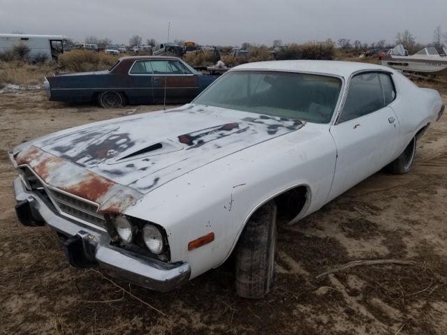 Car is missing motor and trans. This car came optioned with a 340 and automatic transmission. I have a 1972 360 with J heads I would sell seperate. The correct 8 3/4 rearend with rear sway bar is still present. Factory disc brakes are still there and complete. Brakes do not work. Interior is mostly complete with correct style bucket seats and console. The seats have 1971 seat tracks on them. Upholstery is not the correct style. Correct rally dash with 150 speedo is there. Guages look decent but radio area has been cut out. Am radio is included. Factory black door panels are all there and are pretty decent. The steering column is a floor shift column but is not correct for the car. Car steers and rolls. Most of the tires have air in them or will hold air long enough to load. Console is not perfect or fully complete. Missing console plate. Shifter is not correct. The body is pretty solid with nice floors, nice trunk floor and mostly solid sheet metal. I have not seen any rust in fenders or doors but not going to guarantee that there isnt. Rockers look straight and solid. It has the typical 1973-74 lower 1/4 rust. Body is pretty straight. No rear valance.The last 6 inches of Left front frame rail has some damage on the end. Fender tag reads:RM21:Plymouth Belvedere,SatelliteMedium, Road Runner2 Door CoupeH3G: 340 240HP(net) 1-4BBL 8 CYL1973St. Louis, MO, USAE55: 340 cid 4 barrel V8 275hpD34: Light Duty Automatic TransmissionFY1: Top Banana Exterior ColorD6X9: Trim - Luxury, Vinyl Bucket Seats, BlackTX9: Black Diamond Int. Door FramesC01: Build Date: December 01267394: Order numberFY1: Top Banana Top ColorU: USA SpecificationsA88: Interior Decor GroupB41: Front Disc Brakes w/Standard 10in RR DrumC16: Console w/Woodgrain PanelC56: Bucket SeatsG36: OS Dual Racing MirrorsJ52: Inside Hood ReleaseM21: Roof drip rail moldingsM26: Wheel Lip MoldingsH41: Heater w/ Upper Level VentN42: Chrome Exhaust TipsR11: Radio Solid State AM (2 Watts)V8X: Tranverse Stripes, BlackV9X: UnknownEND: End of Sales CodesLocated in Basin, Wyoming. Zip code 82410.Feel Free to ask any questions or request further pics. My phone number is 307-272-7363.Buyer is responsible for shipping.A paypal deposit of $500 is due upon purchase of item with the balance due in 7 days. Car can sit here up to one month while shipping is arranged. If further time is needed I will work with you.Thanks