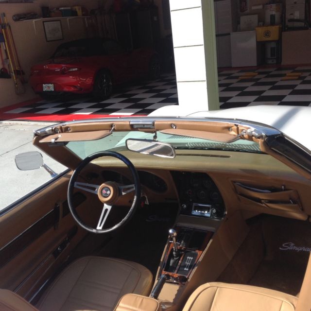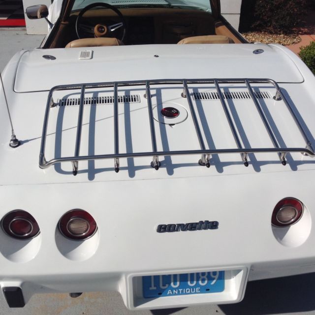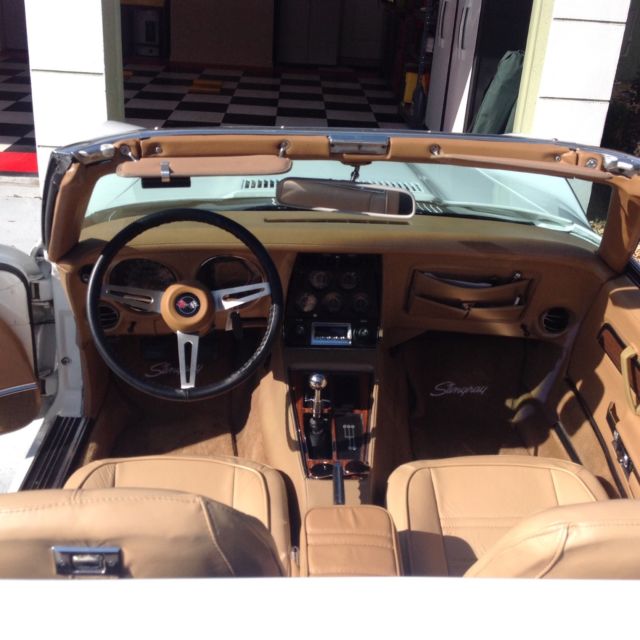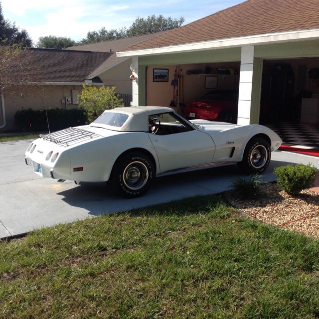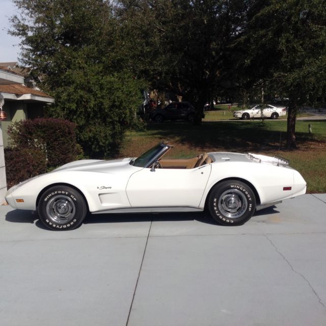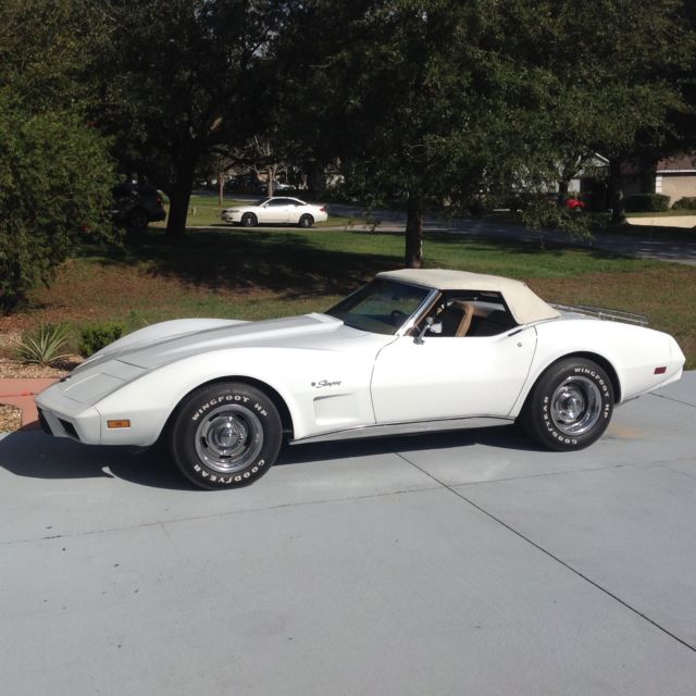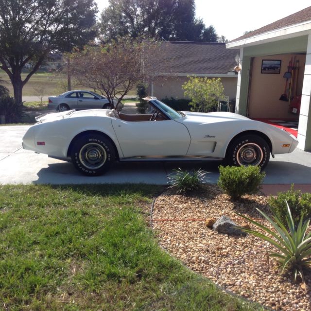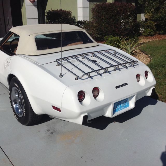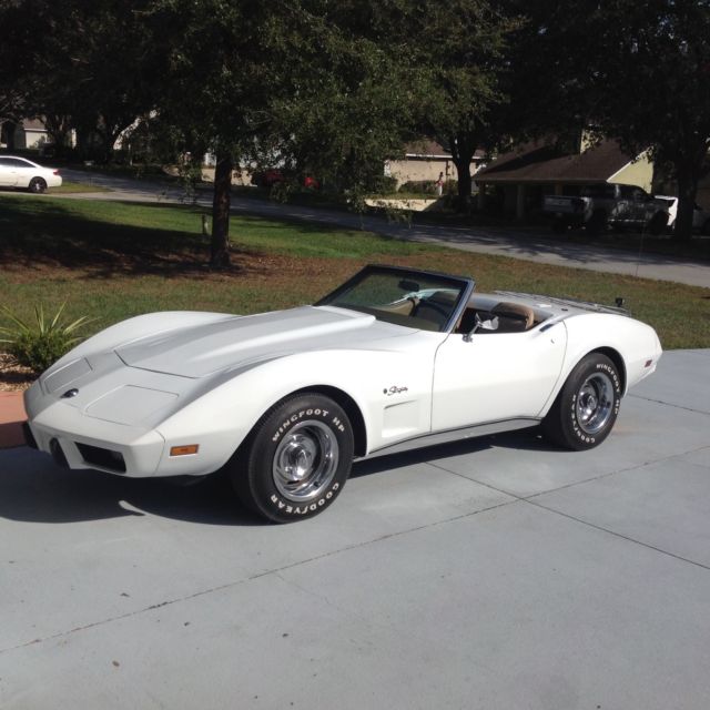 Up for bids is my nicely restored '75 drop top 'Vette. I purchased it from a collector, where it sat for several years. I have put about $6000 in it since then, and just drove it from the Orlando area (where I live) to the Florida Keys--a 600 mile trip--without a single problem or issue. This car is ready for a coast-to-coast trip, no worries. Here is a partial list of the work I've had done on the car, and I have all the receipts to prove it: - new interior (new leather seats, dash pad, shifter console, carpet, instrument panel, etc.) - new suspension bushings and ball joints - A/C system repaired - entire brake system overhauled (new calipers, pads, E-brake system, etc.) - new convertible top - all new hoses and drive belts - new dual exhaust system, from the exhaust manifolds on back - installed a period-correct looking radio, but one you can play your cell phone or tablet through! - installed a new stainless steel luggage rack for use on trips - new power steering ramAll gauges and instruments work, including the clock! The vacuum-operated headlights work perfectly--no air leaks or rotten vacuum hoses, a common problem area in these cars. The horn blows, the tilt/telescoping steering column works perfectly. I also just had it aligned, so it tracks straight down the road. As for any issues: - the tires are nine years old, and probably should be replaced if you drive at sustained high speeds - the A/C system probably needs a recharge, it's not blowing quite as cold as before - the right turn signal indicator bulb in the dash is burned outFeel free to email me with any questions you have. I am including all receipts, and a full set of shop manuals. Also, please note that I have been an eBay seller for almost twenty years, and have earned a 100% favorable rating. The car is as I say it is--no nasty surprises here, so bid with confidence.