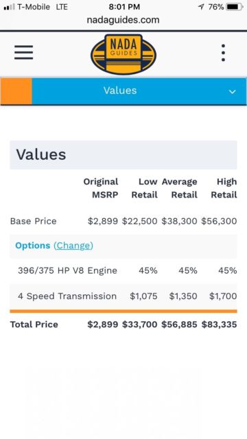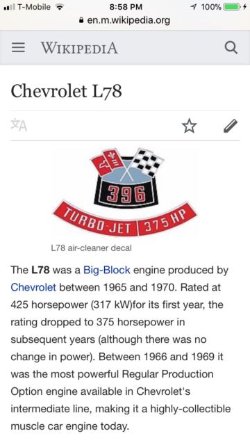 | Body Type: | Coupe | Engine: | 396/375hp Big Block L78 option |