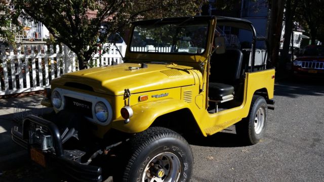 Battery, Runs good when warn, Wagner winch I purchased the FJ40, @ Summer 2013. I was told that it was restored @ early 2000s. Afterwards it sat in barn/garage for many years. Thus I am not sure to the accurate odometer reading. ( it was not turned back) The previous owner had some body work, that included putting in a new fuel tank. Some how they opted not to put in a tailgate, during the restoration. Not really sure why. ( please look at pictures) On e can still get in through the back. The Fj40 Does have some ware and tear. The muffler and suspension has some typical rust.( nothing critical) There is also small amount around the exterior. But over all in the 44 years of service , she is a champ, and in great shape. I honestly haven't driven her that much. Less than a hundred miles a year, If that. We only went to the beach, once or twice, a year. NYC is not the best place to drive in, without power steering. ( they don't come with it) But a lot of fun in the open roads. The only reason I am selling the FJ40, is due to a death in the family. The FJ40 is priced very reasonable. Please don't try to nickel and dime me. Serious inquiries only. Thanks I WILL NOT ACCEPT ANY UNSOLICITED SERVICES!!!