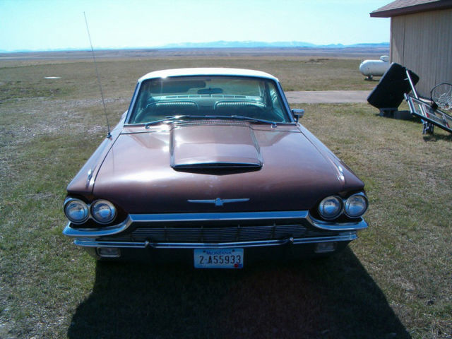 The car starts and drives nice. Newer items include Edelbrock 4-Barrel Carburetor, plugs & wires, shocks, new fluids, brake pads, hoses, etc. The pictures of the car show what is needed cosmetically. Exterior paint is not original and has some sun fade and some clear coat peeling. There is some rust on top of rear panel where moisture has gotten under paint and bubbled. Fender skirts are included but in need of paint and some body work.The chrome for the most part is in good condition. Windshield is cracked. There is a slow leak in brake line somewhere. Turn signals no longer work and not sure if it is broken wires or fuse issue. Headliner has some holes in it. There are holes in door panels from speakers that were added and removed at some point. Drivers seat has some damage to vinyl. Rear seats are in good shape. Overall, the car drives nice and shifts smooth. Has potential to be an excellent Thunderbird with some TLC. Car is located near Fairfield, Montana. Feel free to ask any questions and I will try to answer them in a timely manner. Title is clear and ready to go. Thanks for looking.