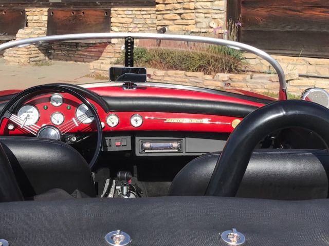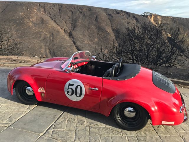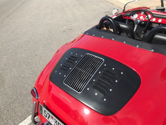 New restoration. Inspired by the famous P-51 fighter plane... this eye blasting red race car emulates the Carrera GT perfectly and no detail was omitted. Custom mild flares (exactly like the race Porsches of the 1950-60's)The 2100 motor with dual exhaust is strong and purrs like a kitten at idle , roars like a lion on the throttle ! Approach 125-135 HP I've had 5 of these gems and this one draws crowds like no other!!! Expect tons of picture takers and adoration from EVERYONE! ! If you deplore attention DO NOT BUY THIS CAR ! Highway gears allow a cruise speed in excess of 70 mph. A few features that make this more serious than the average boring Speedy replica are :-big motor with highway gears , velocity stacks -custom bolstered speedster race seats with driver's side adjustable tracks -wide powder-coated black latch race belts-active vented custom deck lid vents -real quad exhaust -killer Sony stereo with remote -12v accessory plugs and USB charging ports (4)-dual custom roll bar attached to metal frame boxes -front hood fuel door (aesthetic) -gorgeous red paint with clear (driver or show)-custom wheels with Porsche hubcaps -brand new tires (225 rear /205 front) -perfect stance/lowered -all new accurate emblems -Lightweight Lexan windshield -custom windshield support & dash mirror -LeMans side mirrors -custom door panel pouches & dash storage box -custom pedals -custom aviation style shifter -hood straps, stone guards, fog lights -white vintage VDO gauges -custom rear tonneau with twist locks -Euro plate with seals -smog exempt / California SB100 registered (rare)-brand new rain cover THIS IS TRULY ONE OF A KIND NOT SOME COOKIE CUTTER KIT CAR !!Seller encourages inspection prior to sale Call with any questions 805-341-1229