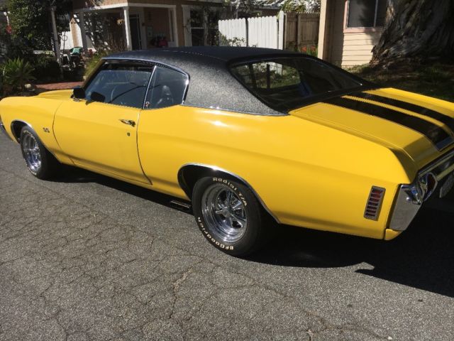 Factory L048 350Cu V8 M21 4 speed Muncie Air conditioning 12 bolt rear end SS trim package SS package This sweet factory SS chevelle has lots of prominence including copies of original build sheet found above the gas tank, more than $30,000 in reciepts, and binders of ground up restoration pictures showing the 2,000hrs of labor that have went into this beautiful beast. I have over 100 pictures and videos of te Chevelle if you would like to see anything. This Super sport was treated to a complete ground up restoration completed circa 2012. It as seen less than 5,000 documented miles since and has won several awards and trophies. Everything goes with the car. Thereâs are bins of paperwork and extras so be prepared to get everything. Not many true muscle classics were built this nice, having been done by the owner, a 20 year GM mechanic no stone was left unturned. It is now time to pass this treasure on to its nex worthy owner! The chevelle will come with a clean California title and current California registration valid thru June 2018. It is not meant for youngsters, you will get tickets driving this car it is way to sexy sounding and fun. It does have some street strip mods, Which were tastefully done and easily removed including bolted in roll bar, electronic headers dumps, push button ignition, just lots and lots of amazing work. PLEASE CALL ME FOR ANY QUESTIONS OR CONERNS!805-602-7921