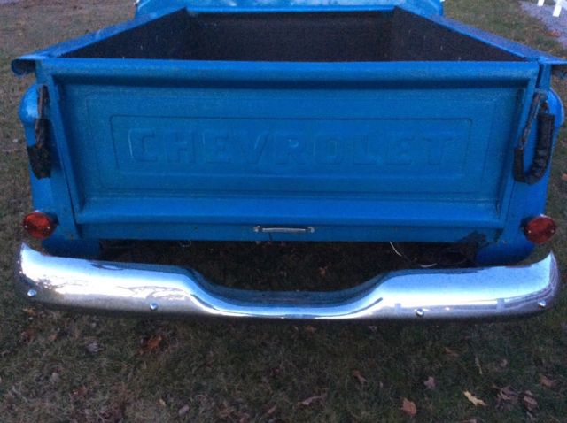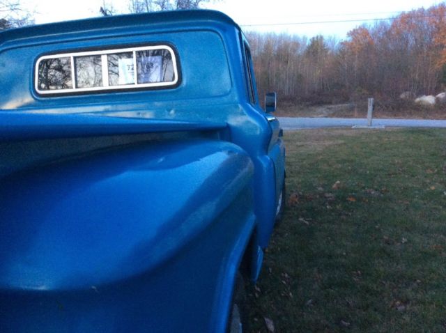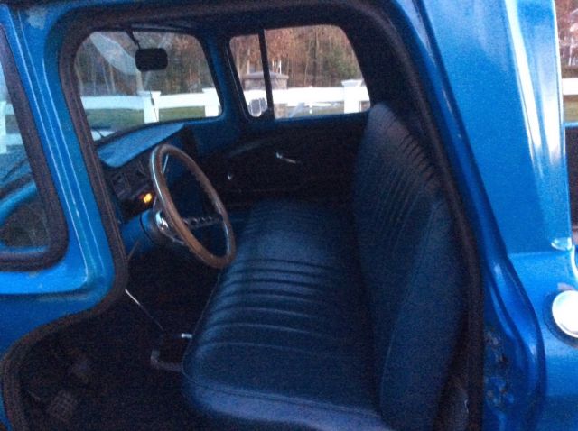 In Oklahoma all its life, this truck is original, unmolested and clean of moisture and rust! Drive train has been freshened up and runs great. This big block V6 was rated for 165 hp but was high on torque at 280 ft lbs! Power to haul, tow, or just get you down the road, it's very capable! This truck came stock with a 3spd manual floor shift trans, but I have a 4spd auto from a truck of the same yr, that goes with the sale! Drives good as is. Great driver and gets a ton of thumbs up! Ready to be brought to the next level or just enjoy as is. Either way a very cool truck. Runs straight down the road. New clutch, good brakes, alum Jeep rims on it now, with good tires. It needs some minor repairs, as it's a 56 year old truck. Needs new paint, as this blue was applied 15 yrs ago and is showing its age. Most lights work and gauges too. A few need attention. All in all a hot rod truck you can drive while fixing the little things. Bidders, Please contact me with any questions. As is, no warranty applied or included. This is not a NEW truck! Will need some work to be perfect!
