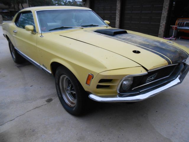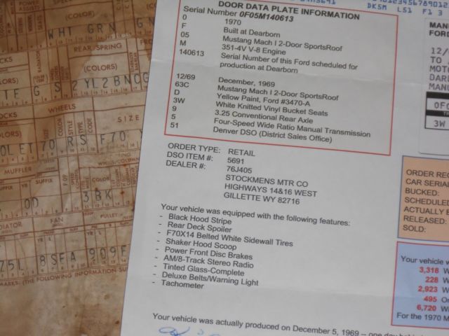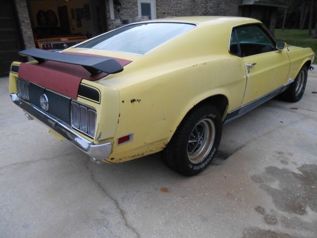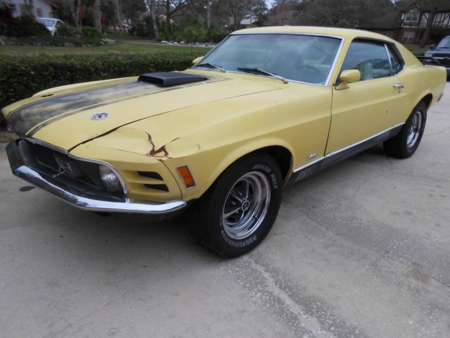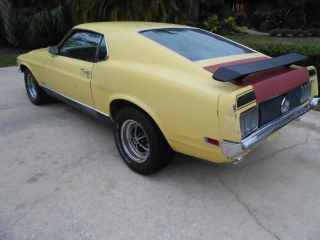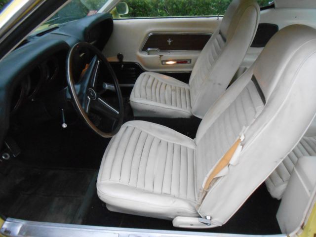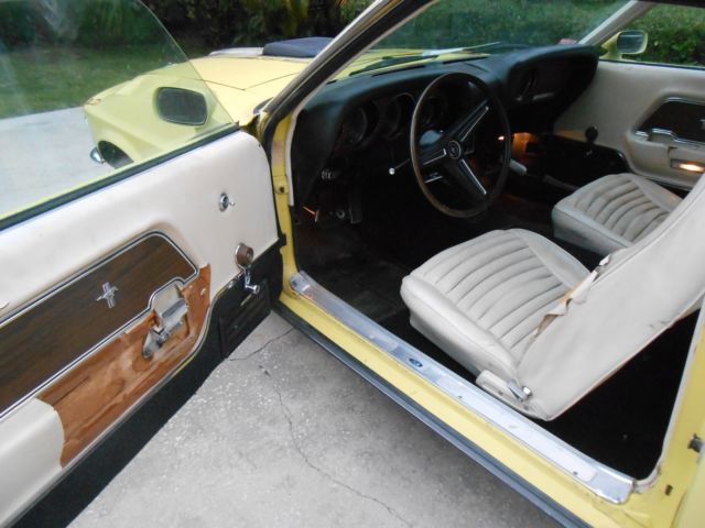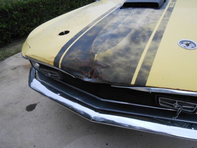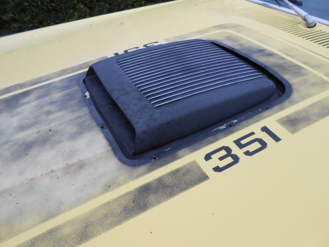 351 4V 4-SPEED FACTORY SHAKER YELLOW , WHITE INTERIOR FACTORY TACH AND REAR SPOILER THIS CAR HAS THE RIGHT OPTIONS AND COLOR COMBO THIS IS A GREAT PROJECT CAR I PURCHASED IT OUT OF ARIZONA A FEW YEARS AGO, ITS BEEN SITTING I DONT HAVE THE TIME TO RESTORE IT, THE MOTOR RAN GREAT WHEN I GOT IT, BUT IS RUNNING RUFF NOW, NOT SURE IF IT JUMPED TIME OR NEEDS A VALVE JOB, BODY IS SOLID A FEW MINOR SPOTS OF RUST, HOOD AND LEFT FENDER NEED TO BE REPLACED, FLOORS ARE SOLID HAS A FEW DENTS FROM WHAT I WOULD THINK A FLOOR JACK I HAVE A NEW DATE CODE CORRECT CAR-LITE WINDSHIELD AND UNDERHOOD PARTS I WILL INCLUDED LIKE SPARK PLUG WIRE HOSES STUFF LIKE THAT EVERYTHING UNDER HOOD IS FACTORY ORIGINAL, RADIATOR , EXHAUST MANIFOLDS, DIST, ALT. ETC. EVERYTHING IS CORRECT MOTOR AND TRANS ARE THE ORIGINAL NEVER OUT OF THE CAR ORIGINAL HURST SHIFTER THE ONLY THING THAT NEEDS TO BE CHASED IS AN AM-8TRACK I HAVE THE MARTI REPORT, ORIGINAL BUILD SHEET, AND ORIGINAL BUCK TAG IF YOU HAVE QUESTIONS YOU CAN CALL 321-288-2237 STEVE THIS CAR IS GOING WITH NO RESERVE DONT BID IF YOU ARE NOT READY TO BUY CAR IS FOR SALE LOCALLY SO IF YOU WANT TO BUY IT BEFORE AUCTION ENDS YOU CAN FOR $19500 ARE BID AND TRY YOUR LUCK CAR IN MELBOURNE FLORIDA