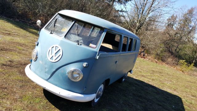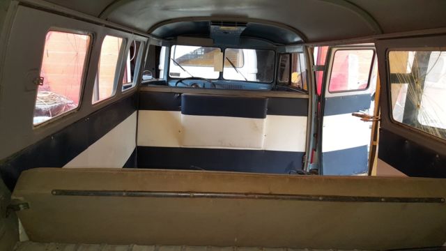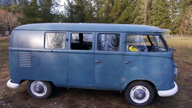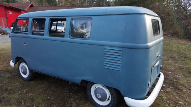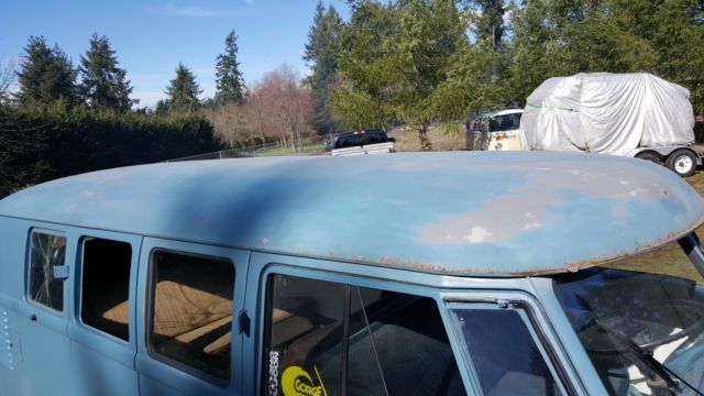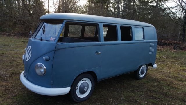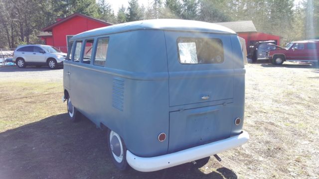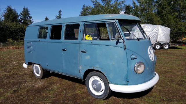 Only buyer with 5 or more feedbacks only please! Will sell worldwide! Shipping available Seattle to Los Angeles is $600 to $800 Seattle to Oakland, California $500 to $600 Overseas buyer please contact West Coast Shipping in Richmond, California. Easy Project!1600 cc dual port Runs and drives but NOT a road worthy!!Stock transmission Shift Ok through all gearsBrake work fine. Electrical needs work. Rust spots:Lower doglegs on both sidesInner rocker on passenger side is the worst spot. See pictures. Body is mostly solid, only rust I found on both lower doglegs. (pictures available) also some rust on inner rocker on passenger side and one right rear outrigger. Original paint supposed to be L31 DOVE BLUE, the whole front nose ,front RIGHT door ,also roof is original paint, then the rest is blended pretty nicely! SPLIT bus bumpers Correct bus 15" rims with good tires Body is very sound Roof has couple of dents Solid rain gutter Solid fresh air vent Solid and original DASH Front nose is mostly nice but has small dent. All doors, open and close nicely! Engine lid is missing prop. Runs and drives but NOT A ROAD WORTHY!! Needs electrical and engine gone through. Front driver side door comes with late bus window frame Missing 3 fix side windows Two pop-out windows are damaged! SERIOUS BUYER only! Selling the bus AS IS NO WARRANTY NO RETURN NO B-S!! ASK QUESTIONS BEFORE make an offer! Worldwide shipping available at buyer expense! Clean and clear title All the vin number and tags are intact!