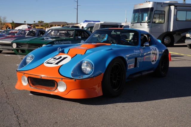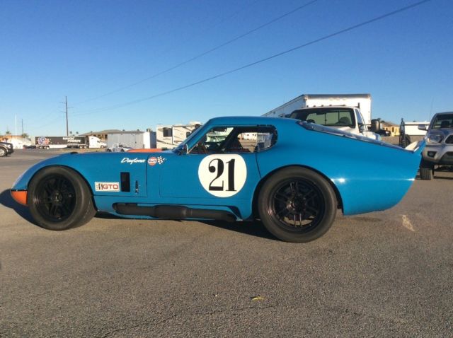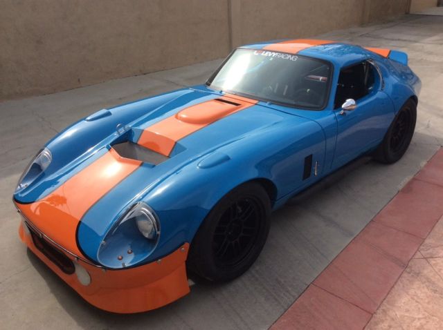 This stunning new Factory Five 1965 Shelby Daytona Coupe replica was built to exacting specifications as a Street legal purpose built race car for road racing by Levy Racing in 2017 with only 500 miles. The car weights only 2300 lb (1043 kg), incredible power to weight ratio and dare to be unique at every Race event world wide The car includes a small block all aluminum 400 C. I. Dart 10.5 to 1 compression endurance race engine with 650HP and Dry sump oil system. G-Force Nascar 4 speed magnesium cased transmission, Jones Racing HTD pulleys, and QA1 fully adjustable shocks with Eibach springs. It also comes with a Quartermaster 8.5â triple disk racing clutch, custom heat exchanger for oil cooling, custom made powder coated cockpit panels, and custom made racing headers, collectors, and quick change side pipes (there are one set of straight pipes and one set of muffler pipes). The accessories are plentiful! They include a quick release collapsible steering column, a custom offset mounted Fuel Safe, custom radiator mounting, an Spal hp fan, a Firebottle 5lb halon fire suppression system, a quick detach valance & splitter, billet control arms, custom Ford Racing 2015 IRS with CrMoly Driveshaft, Wilwood 6 piston brakes, 2 sets of 10.5â+18â alloy Enkei race wheels, Wilwood pedal set, custom billet reservoirs, Kirkey Racing Seats, and more! This Shelby is fully caged and approved for all Racing organizations NASA, SVRA, SCCA, VARA, SOVREN etc.it's the classic ultimate racing machine with the performance of newer super cars like Porscheâs GT3 and Corvette Z06âs ! This Shelby Daytona Coupe would truly make Carroll Shelby proud. Video https://youtu.be/hWOGi72JVVki can arrange the shipping from Los Angeles to Europe with MTI Shipping for 1200 Euros. The vessel will take approximately 4 weeks to all european ports