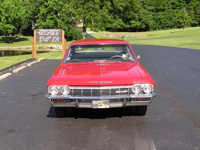 You will see other very cool cars listed by me on Ebay also. I am not a dealer. I am a hobbyist that is getting out of the old car hobby. I have 8 old cars. All very nice and special to me in their own way. I want to reduce down to just 3 cars to save on storage fees. It does't really matter to me which 3 I keep, because I like them all. Don't be afraid to make a reasonable offer on any one that trips your trigger. Sorry, but low ballers will automatically be declined. This is a true tribute car. Not just a Belair with a big block 454 and a 4 speed. The attention to detail and period correctness was taken very seriously. Not sure how this car came from the factory, but the following is what I know to be true. The only non original looking upgrades from an original car are the shifter and disc brakes. Both good things to do. The detailing under the hood and under the car is NOT over the top like some guys do, thus keeping the car more like it just came out of the factory. Correct 1965 425 HP engine. Block casting # 3855962 ( 1965 - 1966 396 4 bolt main ) Suffix code I E ( 1965 396 425 HP ) Engine stamp TO 316 IE. Intake # 3885069. ( 1966 - 1968 396 / 427 --- 375HP - 425 HP ) Fuel lines and fuel filter are correct. Air cleaner and valve covers are correct. Muncie 4 speed with reproduction shifter connected to Hurst completion plus linkage. Shifts better than the original Muncie shifter but looks original. The rear end a factory 12 bolt with 4:11 posi. Factory style 4 core radiator. Tires and wheels are period correct with bias ply tires and poverty hub caps. Exhaust, suspension parts, shocks, brakes, brake lines, fuel lines, fuel tank, etc. are all new. Interior has new reproduction seat covers and carpet, but the door panels, dash, headliner, etc. is all original. It has a factory in dash tack that works fine, but I doubt that it is accurate. It has the radio delete plate. All gauges work including the factory idiot lights. All light work. Wipers work. etc. The body is super straight and always rust free. There has absolutely never been any panel replacements or rust repairs made to this car. The paint is show quality with only very minor imperfections from use. It was originally a red with fawn interior car. Just like you see it. One of the best color combos you could get. The chrome and SS trim is all original and in very good shape. Doors close like new. Actually, the whole car is as close to new and period correct as one would reasonably expect, and it drives like new too. This car is a period correct muscle car that you won't have to worry about someone else at the cruise night having one like it. Drives like a new car. Very reliable and exceptionally fun to drive. Again, call me at 314-732-5925 before you hit the enter key for honest answers to your questions.