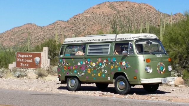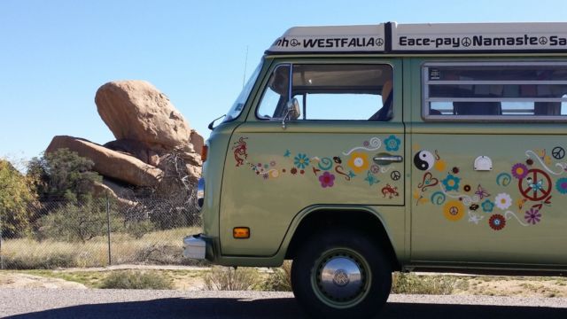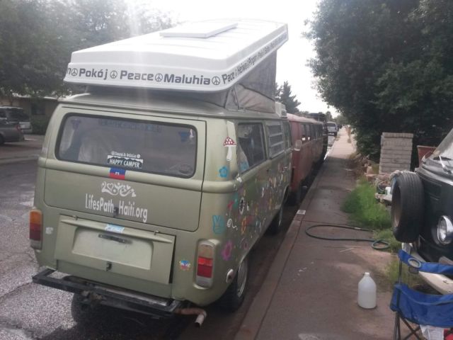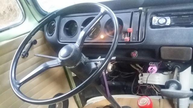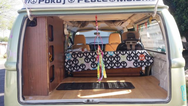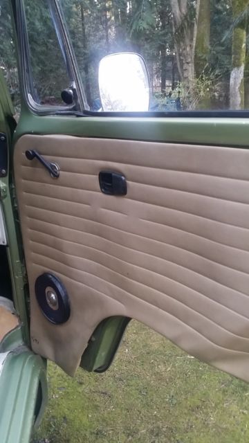 SOLAR panel mounted to roof that charges the newer auxiliary battery with inverter powering household outlets in the camper. Exterior RV electric hookup outlet.Hippie decor all done in decals. Not difficult to remove, or keep/add to it. Before the decals she was repainted by previous owner in Mustang muscle car green, bright original Marino yellow still underneath. They also removed and burned all the cabinets. Another FULL set of cabinets purchased and available, set in, not secured, need some laminate work. Multiple interior after market fans. Pop-top was new when I bought it in 2012.Sink, water tank, pipes, faucet included (just needs pump). No stove in this model (this is a good thing; better to cook outside and not stink up the bus, and no hassle with on-board, non portable propane tanks). In-cabinet-Cooler instead of fridge, again, this is a plus, IMO. Camel colored Ultrasuede upholstery. Significant amount of original green plaid fabric will be included in full price offer, probably enough to recover seats with original green plaid. As well as original green curtains and child cot (not poles). More-functional custom made black-out curtains also included. Rear and bunk cushions are double thickness for extra sleep comfort. Center front seatbox included with original plaid intact. Excellent stereo included, just needs remounted. Great sound. Blaze-cut fire suppression system installed over engine, but also has new fuel lines. ENGINE: Excellent condition. 2 liter fuel injected. Completely overhauled in Phoenix before driven to WA last year, minimal driving since, just to maintain. Newly rebuilt fuel injection from Tracy, California. Rebuilt transmission less than 5000 miles ago by AZ transaxel, one of the best in the biz. Tires <5000. Odometer has not worked since I bought it in 2012. Gas gauge accurate when full but indicated empty when near half full. Speedometer works. Lots of extras in this deal; Parts, pieces, tools, furnishings, fabrics... I'll throw in the essential book "How to keep your Volkswagen alive".Includes original 1977 purchase paperwork, and most maintenance receipts since then, too.Reason for Sale: To put in the hands of a loving new owner/family willing to take the time to update the little things she needs, and to fund restoration of my '64.Live the Dream!Currently located in Kitsap county, WA USASeller willing to make a road trip for delivery within the USA (basic expense paid by buyer).Not willing to ship overseas.