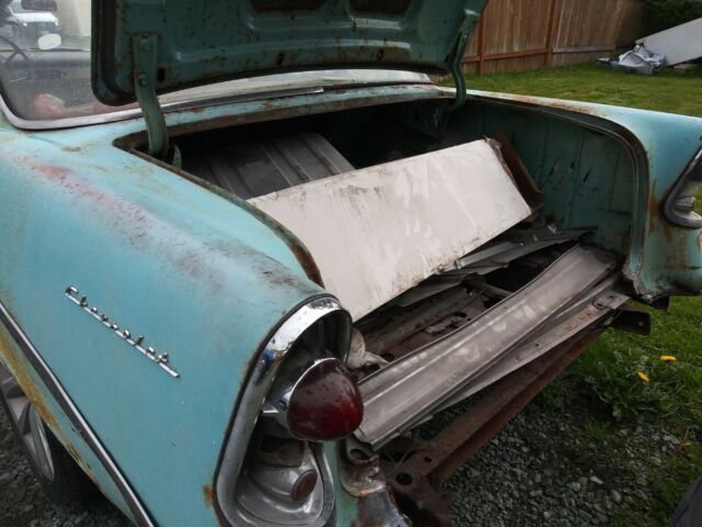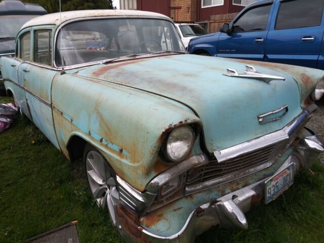 1956 Chevrolet Bel Air 210 Sedan 1956 Chevy 210 Original Barn-Find â Complete Comes with Washington State Title & current collector license plate Solid, complete, original, classic car BARN FIND! A classic car is only original once in its life and this classic/vintage Chevy is an original barn find in its patina glory. Original paint and complete unrestored classic car. Engine was rebuilt and can run with little effort. A new gas tank and some patch panels come with this project car. The car is pretty solid and comes with 95% of all its trim pieces and sits on $700 of nice wheels and tires that also comes with the car. This car will need work done to the gas tank and fuel lines to be a runner. Also needs a battery. The engine is in great shape and tranny shifts without problems. Will need to be picked up by transport with winch capacity or towed/ trailored. An unrestored complete classic. Has patina and rust in the trunk and other typical areas and the trunk will need repair. Frame is solid. Please exercise due diligence and do your inspections before making your offers as this is a contract to purchase and your accepted offer is to be considered a legal binding agreement selling as-is where is and no free work is promised. The winning offers/buyer is responsible for all fees associated with buying this vehicle and the buyer is responsible for all inspections and shipping expenses without exception. As- is means just that so what you see is what you get..nothing else-ask questions You may call me at 253-312-9594 with any questions. I will give up to 30 days free storage for out of state or out of country buyers as long as full payment is made, so please let me know what needs you may have to complete your purchase. Pay Pal deposits are only to be used for initial deposit and balance to be paid by cash in hand or bank to bank money transfer or cashierâs check but the vehicle is to be held until funds clear. This vehicle is also advertised for sale locally and i maintain the right to end the auction/sale at any time without notice. "ALL SALES ARE FINAL"