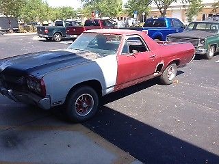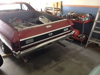 THE GOOD: A real 1970 SS 396 as documented by the Original Build Sheet and Engine Numbers including Engine Code, Stamped VIN in block pad, Cylinder Head and Block casting numbers and dates. TH 400 Transmission and 12 Bolt Rear also have correct numbers for this vehicle. Engine in the car is the long block and is very clean inside and has good compression and oil pressure when cranked on an engine stand. It has been rebuilt in the past by a prior owner. Has SS dash with gauges. Comes with new aftermarket Cowl Induction Hood sheet metal. THE BAD: Even though this El Camino has lived its life in Florida the body is riddled with rust. The frame is solid except for a small area near right front where the sway bar mounts. I am told it spent some years outside where the bed filled with leaves and stayed wet.The lower wall between the cab and bed is gone. The outside of the B Pillars have holes. It was originally a vinyl roof car so the roof is bad. A prior owner cut a hole in the left quarter panel for an unknown reason. BTW, the engine was not in the car during this time and was stored in the barn. The cowl, including where the VIN Tag and Trim Tag are, is SOLID. Additionally, many parts have been scavenged from the car, such as but not limited to, radiator and shroud, inner fenders, drive shaft, dash harness, some trim, gas tank, rear window glass and engine accesories. A REBUILD OPTION: Not included in this sale but available at additional cost is a 1968 El Camino rolling frame with body cowl back. Bed, Roof, B pillars are in good condition. Frame is in good condition. Has one soft lower quarter and some floor pan rust but would otherwise make a good donor body to be grafted to the 1970 above. Comes with a Florida title. Will sell for $1500 to the buyer of the 1970 El Camino above. Will require a trailer to be picked up. Cannot be shipped as it does not run. Its rare to find a 70 El Camino with this level of drive train originality and the original build sheet. Whether restored by using the 68 body or by repairing the 70 body this will be a valuable classic when completed. Could be parted out for more money. But it deserves to be saved.